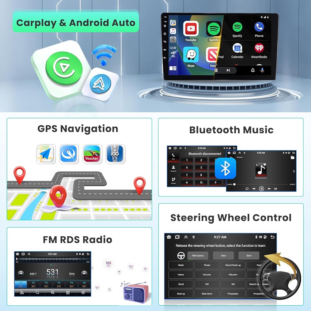 【تنقل نظام تحديد المواقع العالمي (GPS)】 9 بوصة يتضمن استريو CarPlay هوائي GPS ، ويدعم خرائط التنقل عبر الإنترنت والإنترنت. تحتاج إلى الوصول إلى الإنترنت لاستخدام تطبيقات الخريطة مثل خرائط Waze و Google ، وتنزيل بيانات الخريطة المسبقة في HoreGo ، يمكنك استخدام الخرائط بدون الإنترنت
