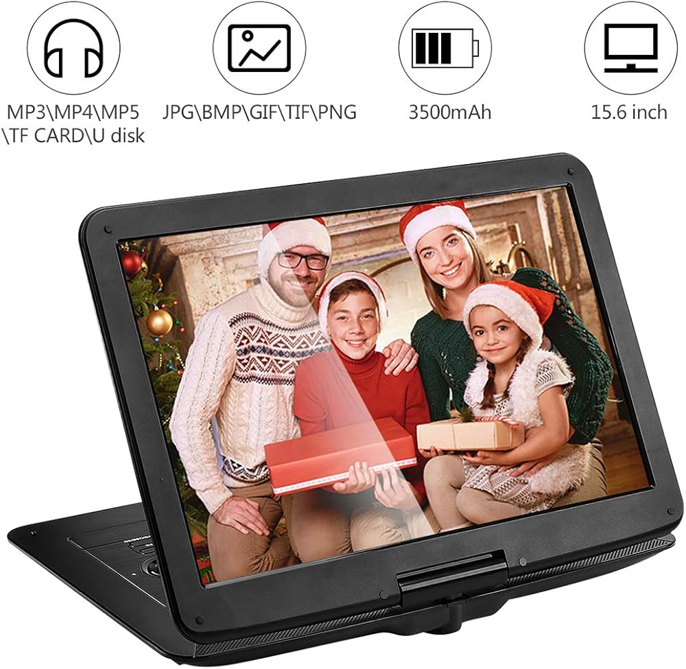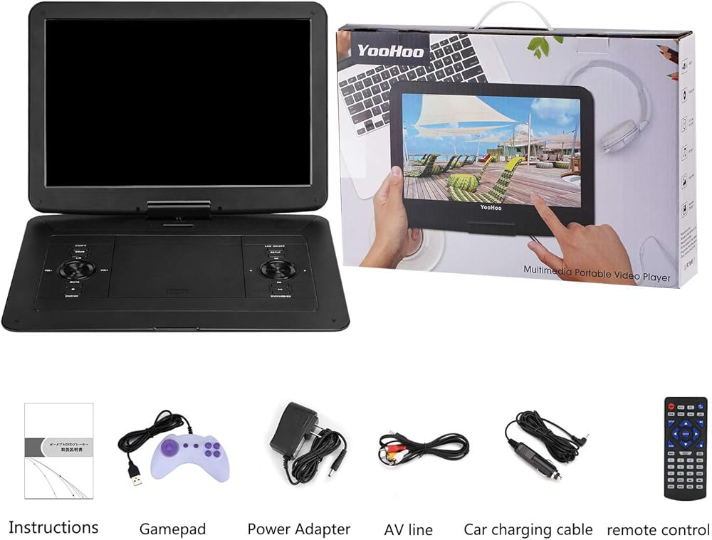 مشغل DVD/CD كبير محمول من YOOHOO مقاس 17.9 بوصة مع شاشة LCD عالية الوضوح دوارة 270 درجة مقاس 15.6 بوصة، وبطارية قابلة لإعادة الشحن لمدة 6 ساعات، ودعم CD/DVD/بطاقة SD/USB