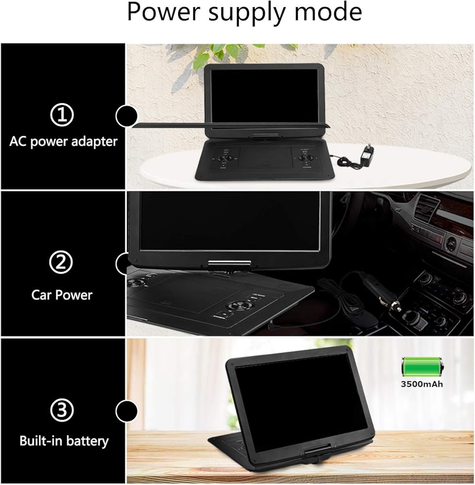 شاهد الأفلام لفترة أطول: مع بطارية ليثيوم قابلة لإعادة الشحن بسعة 3500 مللي أمبير في الساعة، يمكنك الاستمتاع بمشاهدة أقراص DVD المفضلة لديك لمدة تصل إلى 6 ساعات. كما نقدم أيضًا محول طاقة تيار متردد معتمدًا وشاحن سيارة عالي الجودة في عبوتنا، فلا داعي للقلق عندما تكون في رحلة على الطريق.