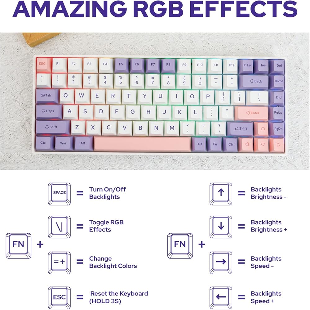 【آثار RGB المذهلة وبرمجة مع البرامج المضمنة】 Epomaker EP84 Plus لوحة المفاتيح الميكانيكية تتميز بمجموعة متنوعة من تأثيرات RGB الافتراضية التي يمكنك التبديل بسهولة بين بعضها البعض مع اختصارات بسيطة. أكثر من ذلك ، يتوفر برنامج متوافق لأولئك الذين يحبون المزيد من إعدادات DIY. يمكنك أن تجعله آثارك الخاصة مع البرنامج