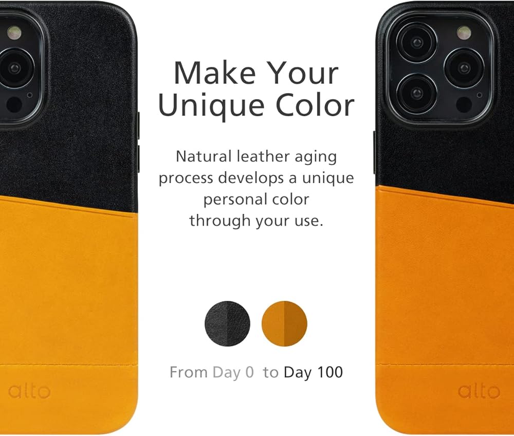 ALTO Leather Card Case المصمم لـ iPhone 14 Pro Max ، Series Metro Series Handmade Premium Italian Wallet Wallet مع حماية قطرة (6.7 بوصة ، iPhone 14 Pro Max ، Brown and Black)