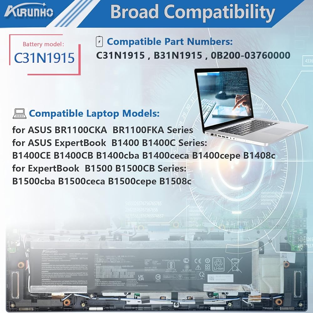 C31N1915 B31N1915 استبدال بطارية الكمبيوتر المحمول لـ ASUS BR1100CKA BR1100FKA B1400 B1400C B1500 B1500CB B1500CBA B1500CECA