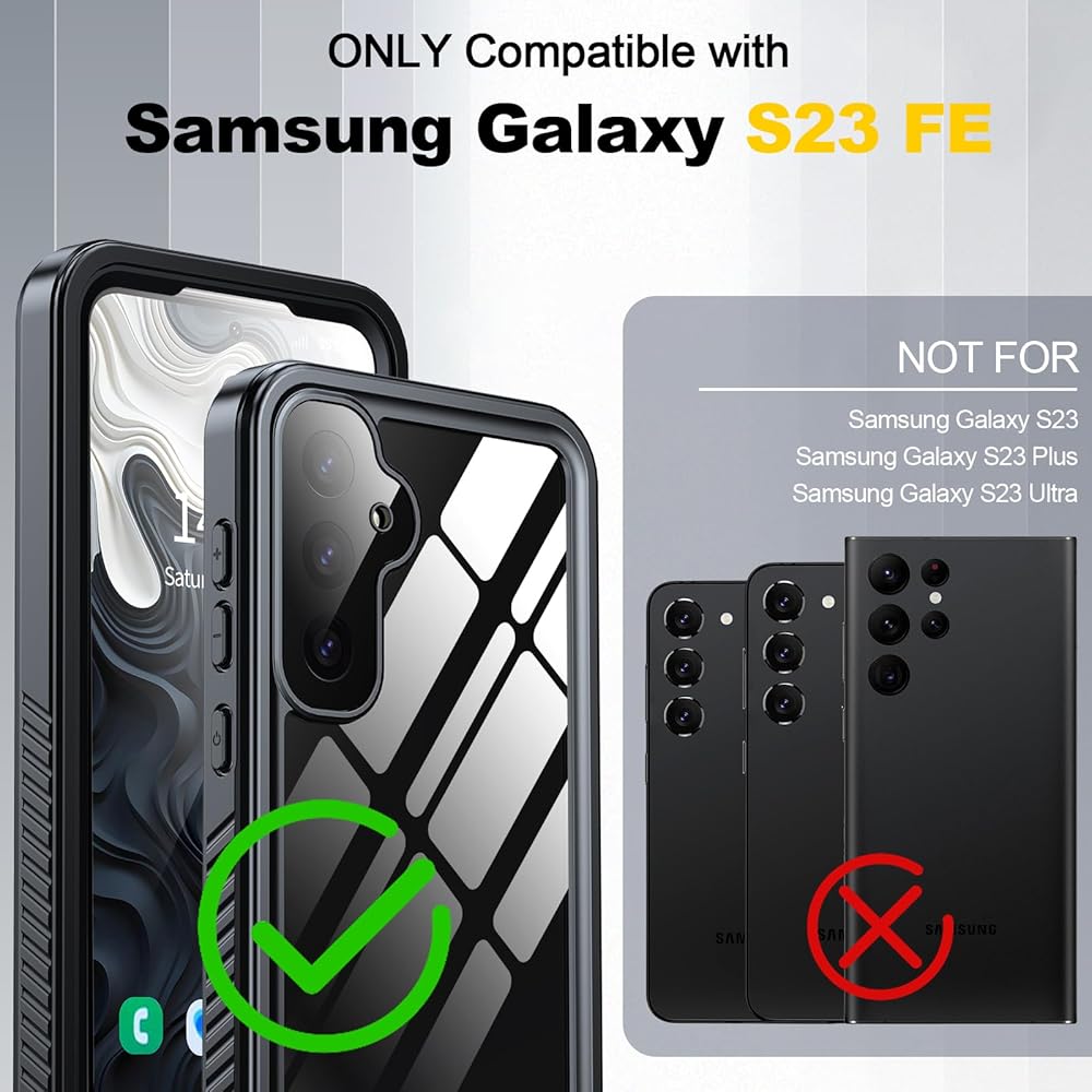 【CASE IP68 مقاومة للماء】 علبة مقاومة للماء معتمدة من IP68 ، حماية Samsung Galaxy S23 FE من الماء. مقاوم للماء يصل إلى 6.6 قدم/2 متر تحت الماء لمدة ساعة واحدة. مثالي لأي أنشطة تحت الماء ، والرياضة في الهواء الطلق والاستخدام اليومي.