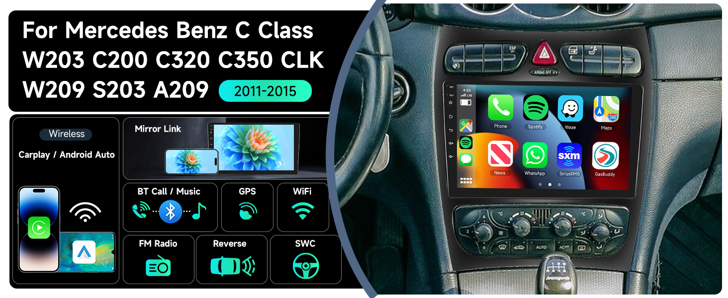 STEROID ANDROID Touchscreen Stereo لـ Mercedes Benz】 المركبات المتوافقة: بالنسبة إلى Mercedes Benz C Class W203 C200 C350 CLK W209 S203 A209 2002 2004 2004. تم تصميمه ومهتمه بمطابقة لوحة معلومات المصنع ، وتصميم نسيج على نمط المصنع ، و 9 '' 2.5D DESTER GLASS MIRROR Auto Player. ذاكرة RAM 2G + ROM 64G ، 1080 بكسل عالية ، شاشة تعمل باللمس الكاملة لسهولة التشغيل ، واجهة مستخدم مصممة بشكل جيد للسيارة فقط. دعم شاشة الانقسام.