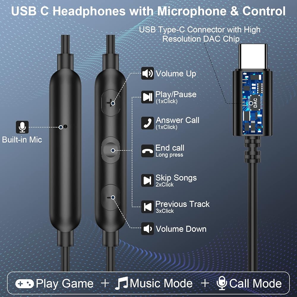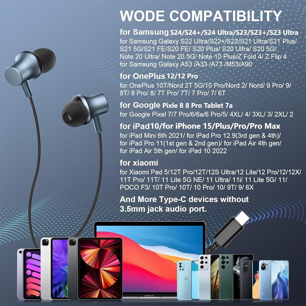 سماعات USB C مع MIC For Fire Max 11 ، لـ iPad Pro ، Air 6 ، لـ iPhone 16،16 Pro ، 16 Plus ، 16 Pro Max ، 15،15 Pro ، 15 Plus ، 15 Pro Max ، لـ Samsung S23 Fe ، Galaxy Z flip ، flip 5 4 ، A55 ، A35 ، A53 ، A54 ، S25 ، S24 ، S23 Ultra ، S23+، S23 ، S22 Ultra ، S22+، S22 ، S21 Fe ، S20 Fe ، Tab S9 ، S8 ، S7 ، لـ Google Pixel 9 9 9 9 9 9 Pro 9 Pro XL 9 Pro Fold 8a 8 Pro 7 6 ، for OnePlus Open ، 11،10t ، 10 Pro ، لـ MacBook Pro 13 14 16 inch ، Air ، for iPad 10 ، Air 5 ، Mini 6 7 ، for Motorola ، for nother الهاتف ، لجهاز الكمبيوتر المحمول السطحي ، USBC Audio Mobile ، الكمبيوتر اللوحي ، الكمبيوتر المحمول