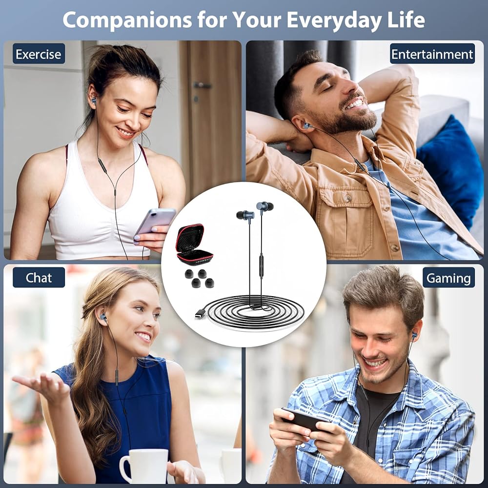 USB C سماعة سماعات الرأس C سماعة الأذن السلكية السلكية المغناطيسية لـ iPhone 16 15 Pro Max Samsung S25 S24 Fe Galaxy Tab S10 Ultra In-Ear in-ear مع ميكروفون لـ iPad 10 Pixel 9 Pro XL