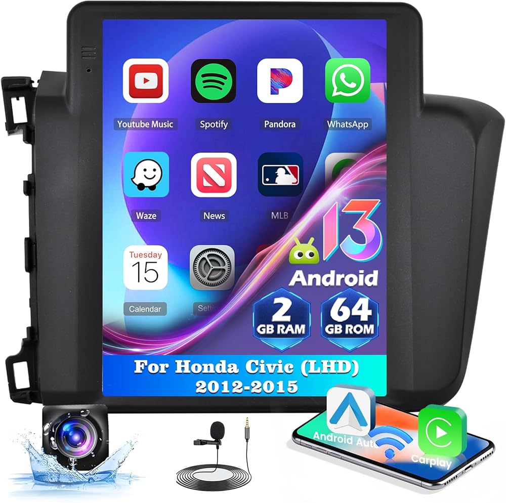 9.7 بوصة راديو سيارة لـ Honda Civic 2012 2013 2014 2015 ، Car Stereo Wireless Carplay Android Auto ، Android 13 System ، 2+64GB ، شاشة تعمل باللمس Radio Car Radio GPS WiFi SWC AHD Camera