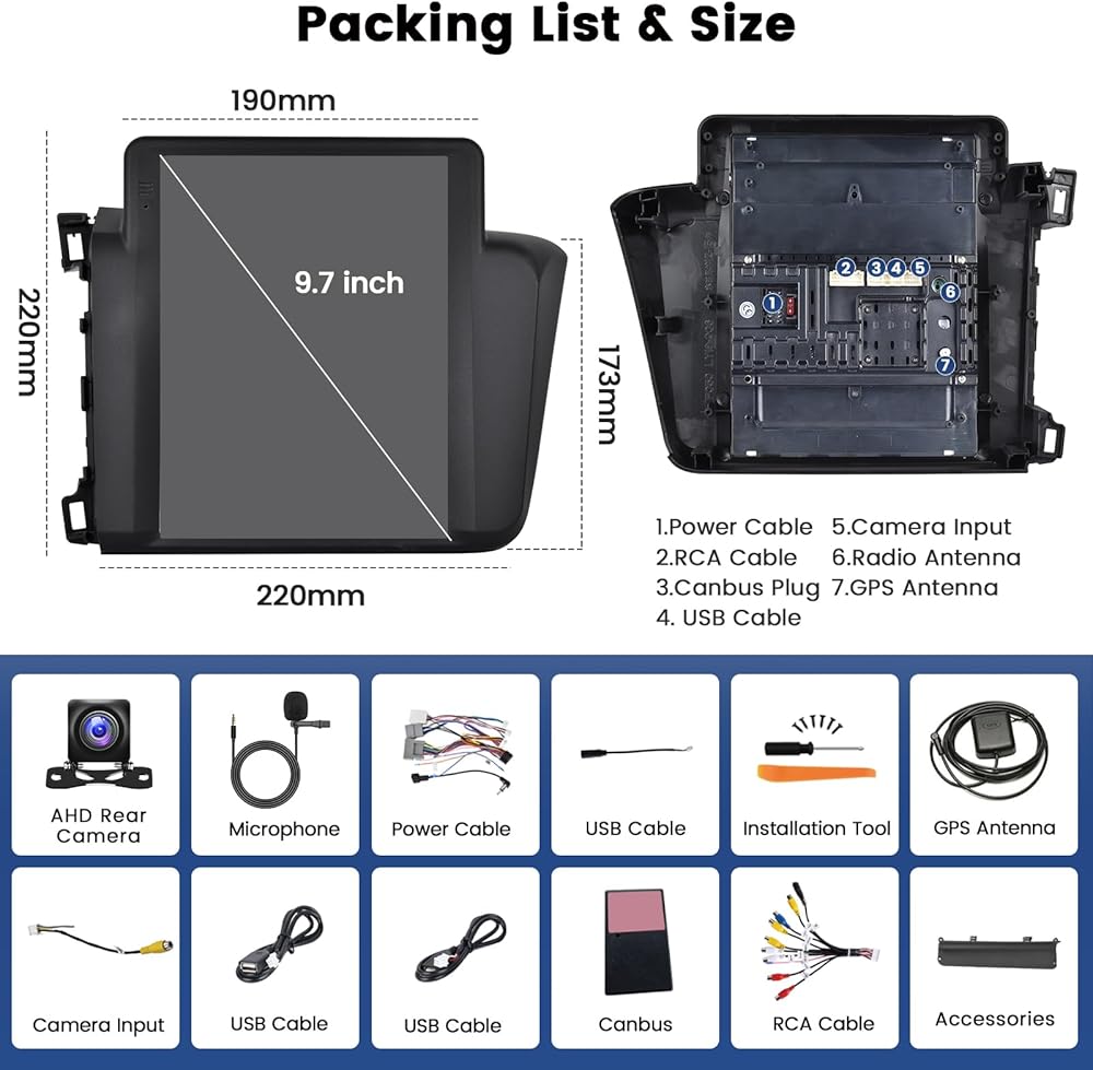 النظام والأداء: بالنسبة لشركة Honda Civic Carplay Stereo مزودًا بـ Quad Core 2G RAM و 64G ROM ، نظام التشغيل Android 13 ، يضمن شاشة Ultra HD Touch 9.7 بوصة بدقة 1024*600 ، تجربة مستجيبة وحساسة للمستخدم