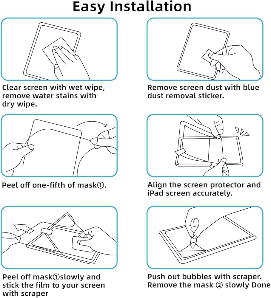【شعور وكأنك تكتب على الورق】من خلال المعالجة الخاصة، نحقق راحة الرسم، مثل الرسم أو الكتابة أو الرسم. حوّل الزجاج إلى ملمس ورقي، طبقة بيبر فيل رفيعة للغاية، وتحافظ على حساسية اللمس مثل شاشة ايباد 9.7 بوصة.