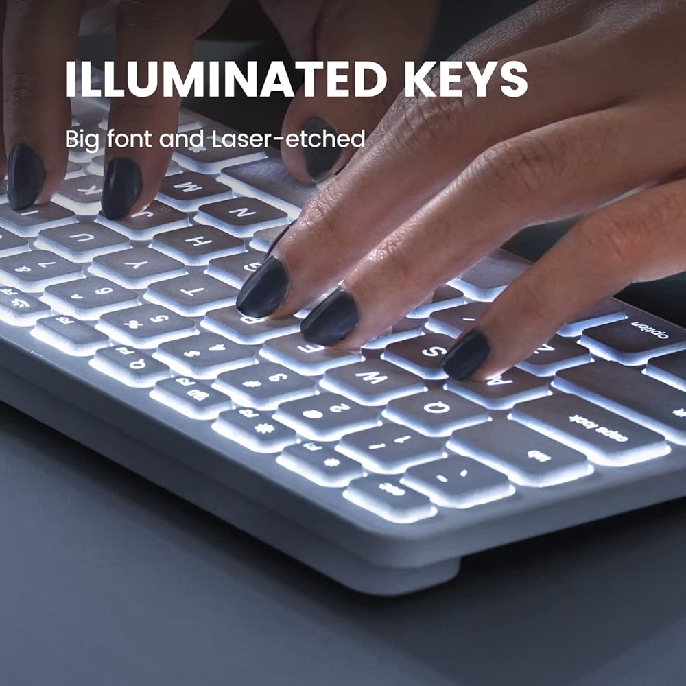 Compact و Ultra-Shin: لوحة مفاتيح سلكية مع تصميم مضغوط مع منطقة لوحة مفاتيح رقمية مع لوحة مفاتيح حديثة ورقيقة للغاية ؛ (أبعاد المنتج: 362x116x21mm) ؛ (وزن المنتج: 418 جم)