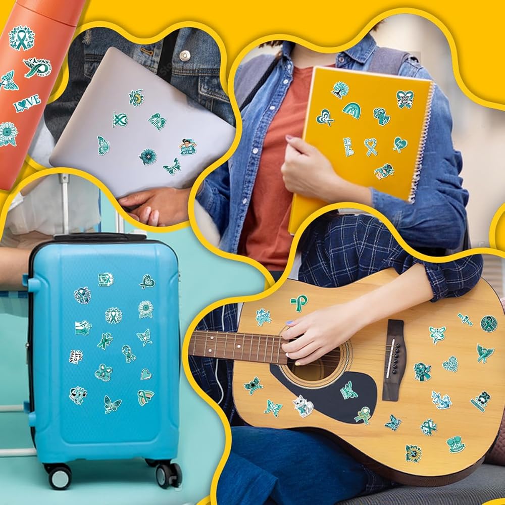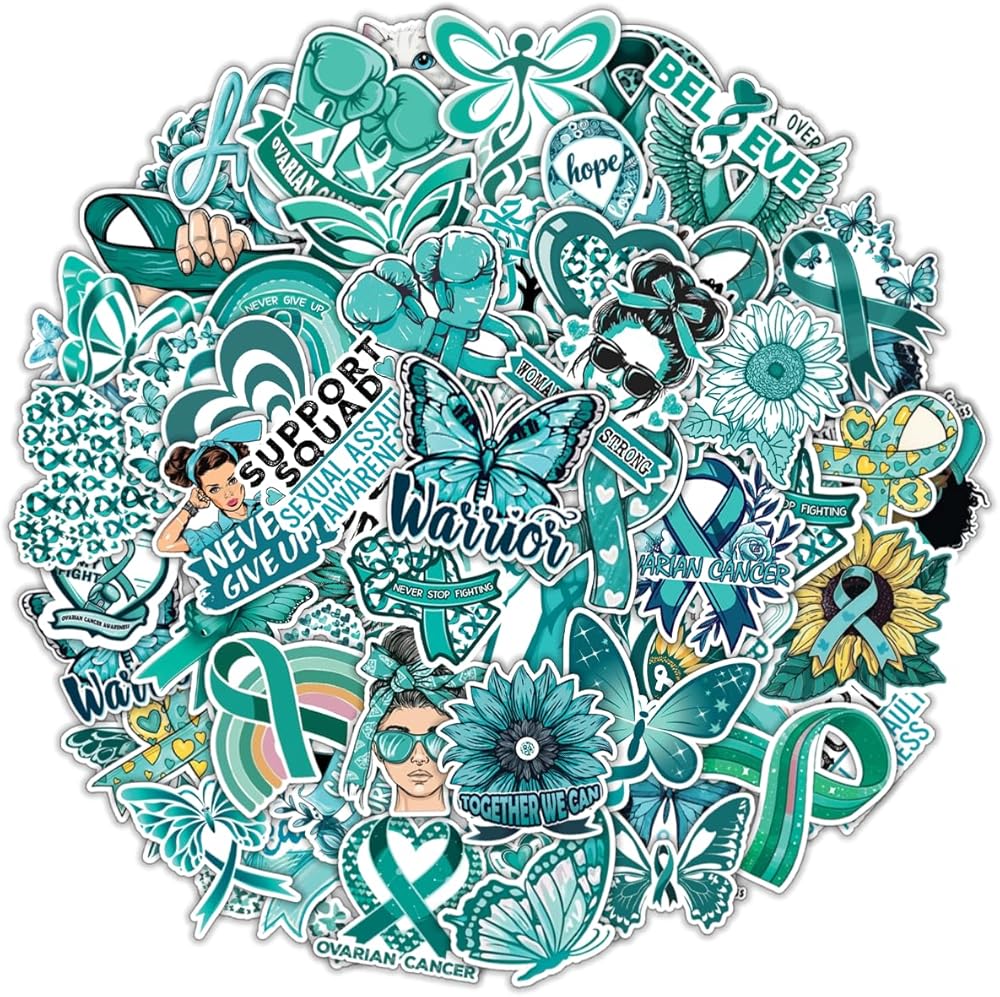 64 PCS ملصقات التوعية بسرطان المبيض ، شريط مزخرف ، شرس مقاوم للماء لزجاجات المياه ، أمتعة كمبيوتر محمانية ، المراهقين ، البالغين ،
