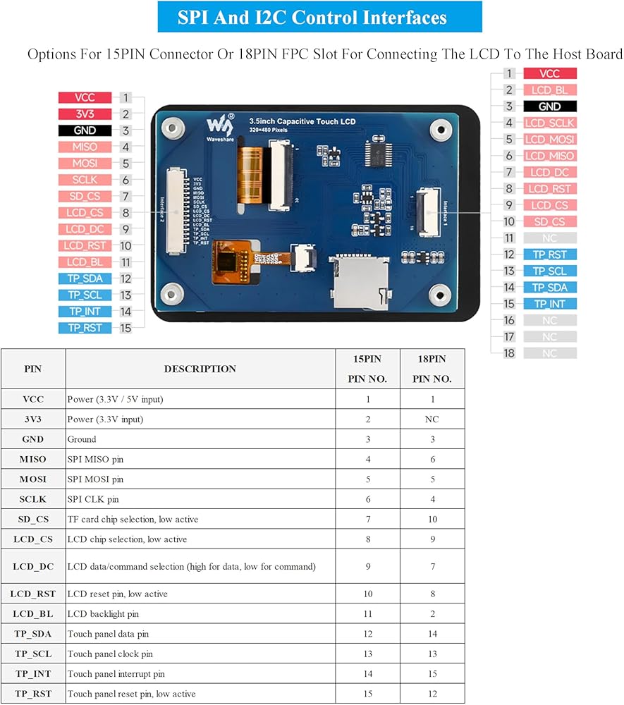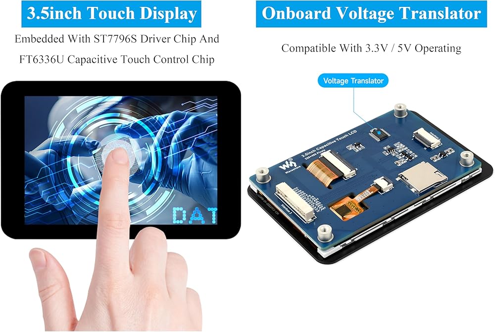 3.5 بوصة شاشة تعمل باللمس 3.5 بوصة متوافقة مع Raspberry PI 5/4B/3B+/Zero/Zero W/Zero 2W/PICO/PICO W/PICO 2/PICO 2 W/ESP32/AR-DUIN واجهات