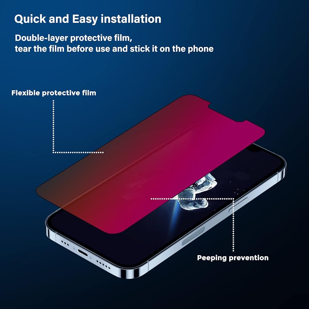 [الحماية اليومية]: يمكن لوقاية الخصوصية iPhone 12 Pro Max Protector حماية هاتفك بشكل فعال من المشكلات اليومية مثل القطرات اليومية والتصادمات والخدوش والبلى اليومية ، المناسبة لنماذج iPhone 12 Pro Max.