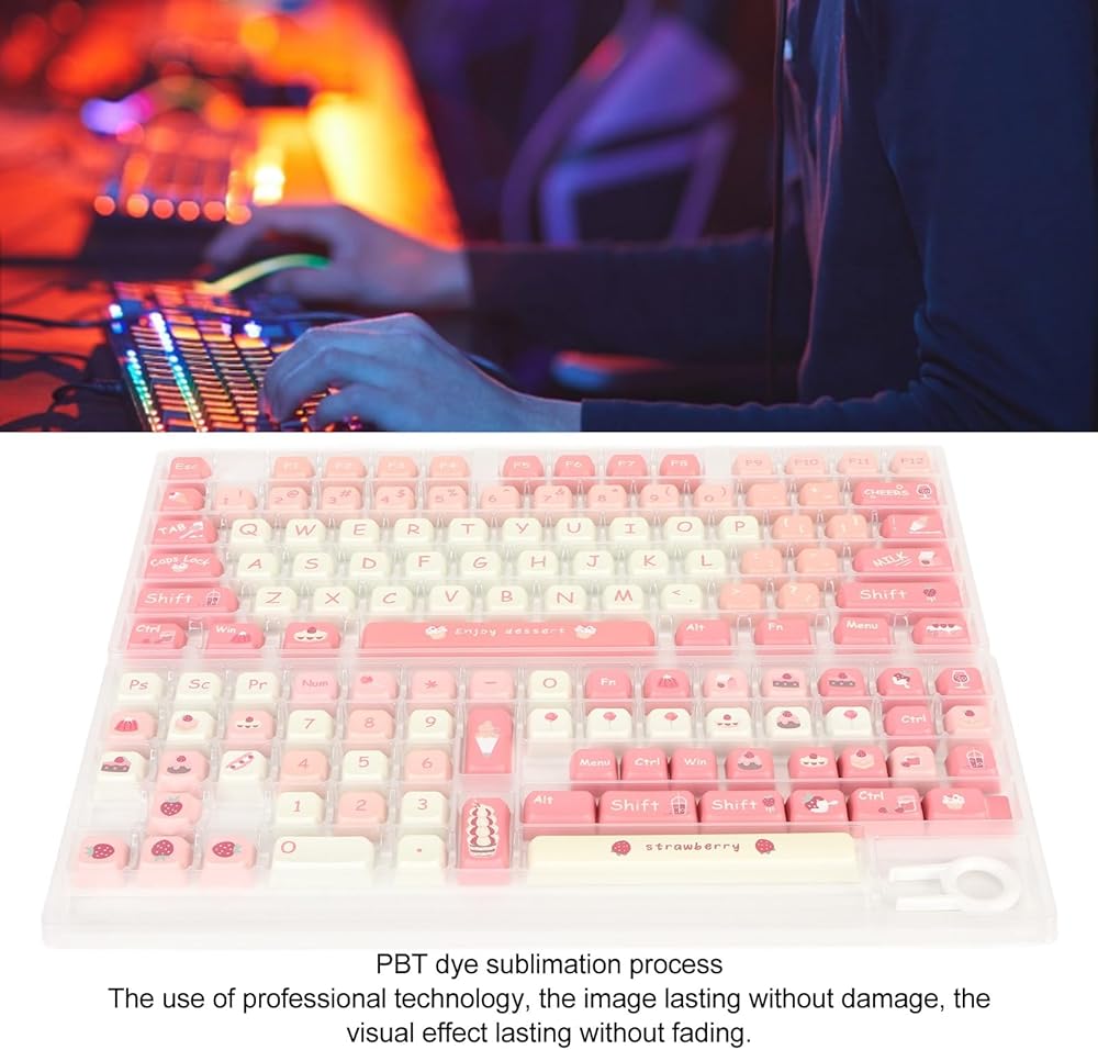 PBT 135 Keycaps ، Cream Strawberry Keys Keycaps PBT Universal Compatability Keycaps ، XDA مثل مفاتيح الارتفاع لـ 61 87 96 98 104 108 لوحة المفاتيح الميكانيكية