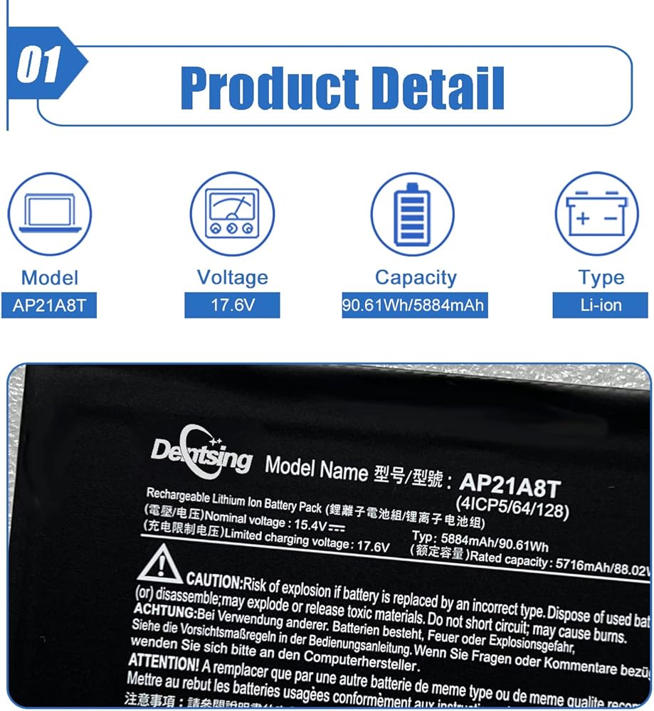 【التفاصيل الأساسية】 نموذج العنصر: AP21A8T ؛ نوع البطارية: لي أيون ؛ الجهد: 15.4 فولت ؛ السعة: 90.61WH/5884mAh ؛ لون البطارية: أسود.