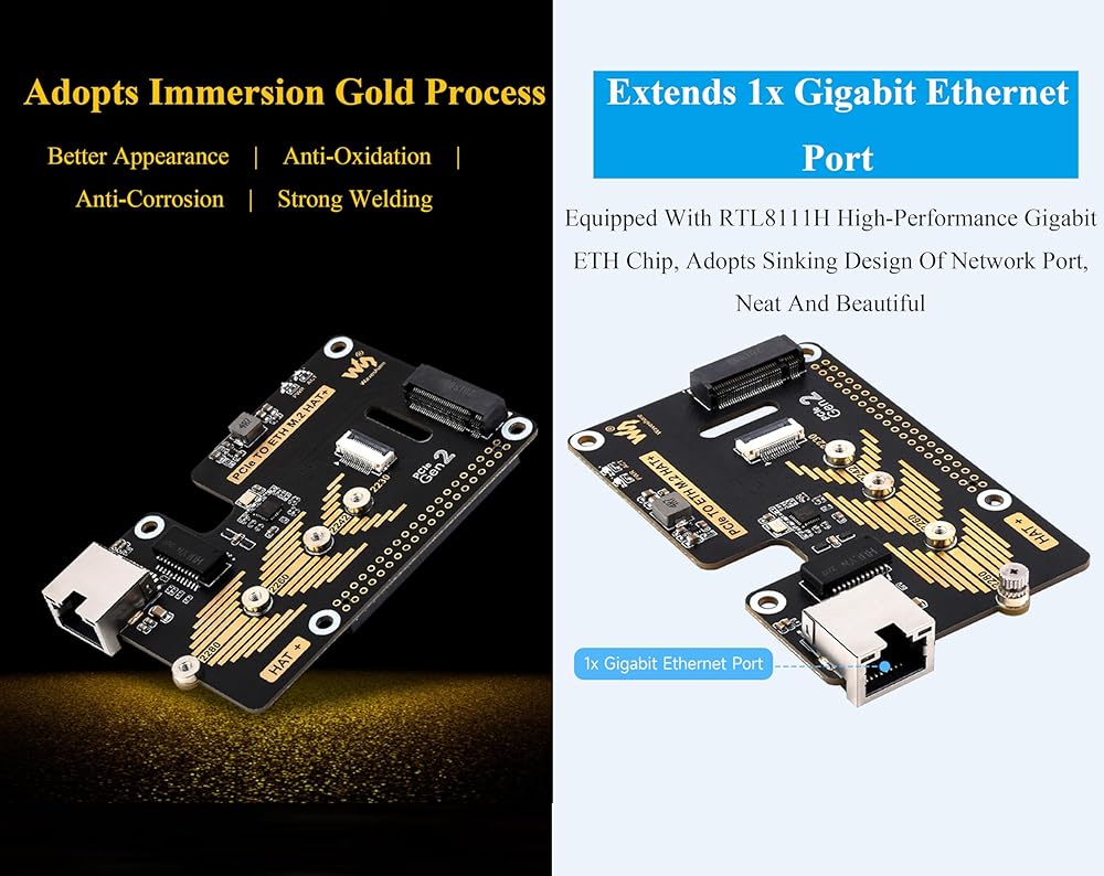• هذا هو محول PCIe إلى ETH و M.2 ، متوافق مع Raspberry PI 5. يمتد منفذ Ethernet 1x Gigabit. مزود بشريحة Gigabit ETH عالية الأداء RTL8111H ، تتبنى تصميم غرق لمنفذ الشبكة ، أنيق وجميل. لا حاجة لبرنامج تشغيل ، وتوصيل والتشغيل.