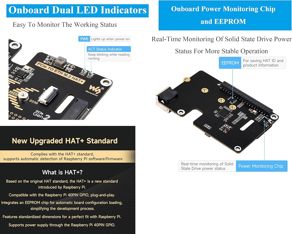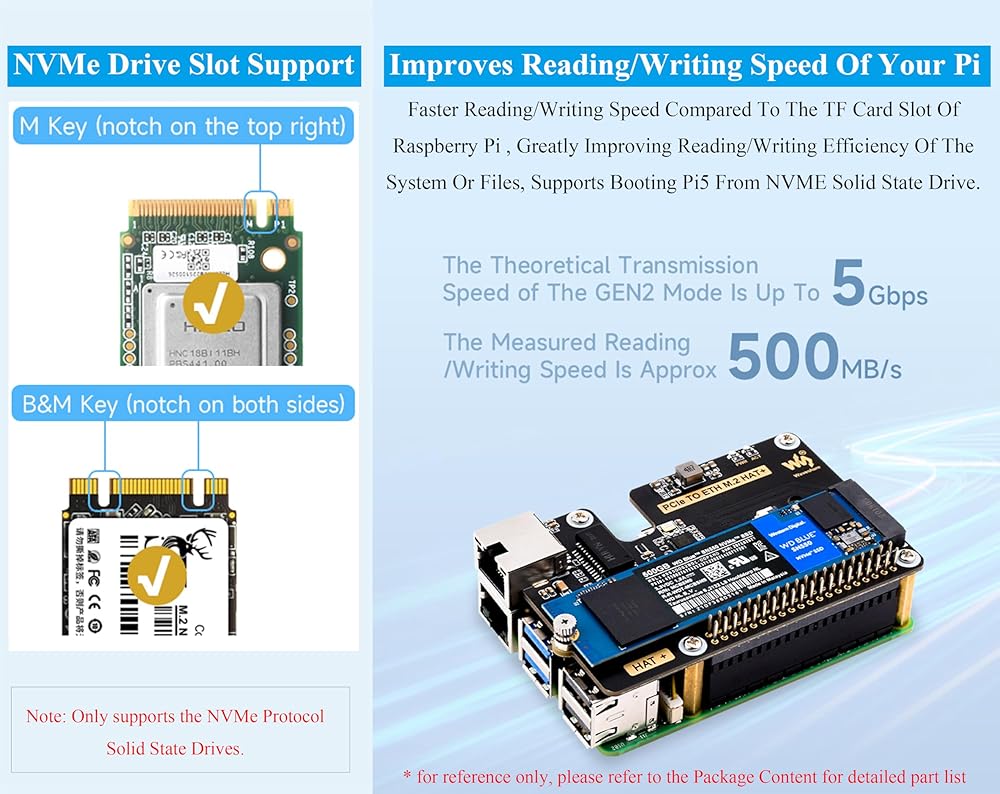 • يحسن سرعة القراءة/الكتابة من PI الخاص بك. سرعة القراءة/الكتابة بشكل أسرع مقارنة بفتحة بطاقة TF من Raspberry Pi ، مما يؤدي إلى تحسين كفاءة القراءة/الكتابة للنظام أو الملفات ، يدعم تشغيل PI5 من محرك الحالة الصلبة NVME.