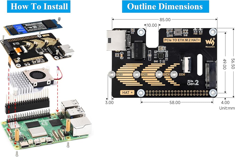 PCIE to Gigabit Ethernet و M.2 Adapter HAT متوافق مع Raspberry PI 5 ، PI 5 NVME HAT دعم 2280/2260/2242/2230 NVME M.2 SSD ، معدل بيانات 5 جيجابايت في الثانية ، قراءة/الكتابة عالية السرعة ، لا يوجد سائق مطلوب