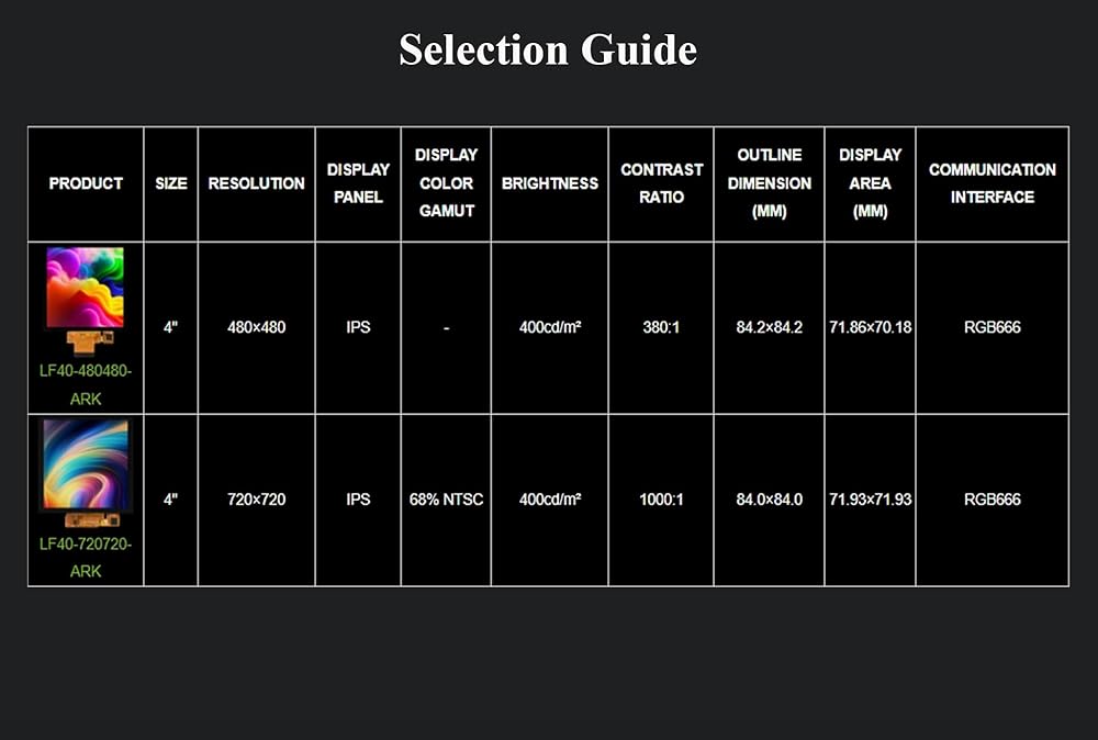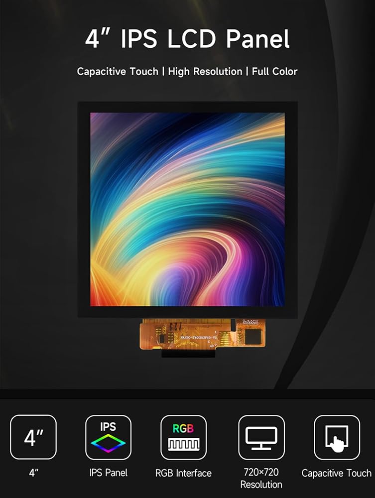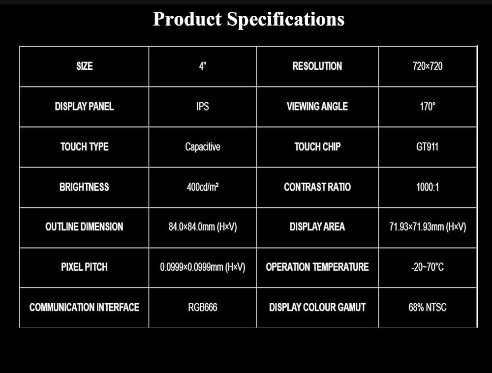 عرض 4Inch Touch: عرض 4inch IPS Capacitive Touch ، 480 × 480 بكسل ، واجهة اتصال RGB ، متوافقة مع لوحة تطوير Luck-Fox Pico Ultra.