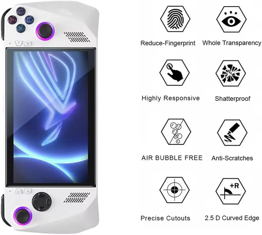 واقي الشاشة متوافق مع Asus Rog Ally Game Player [7 بوصة] Film Film Protect Film Ultra HD ، 9H صلابة ، فقاعة مقاومة للخدش خالية