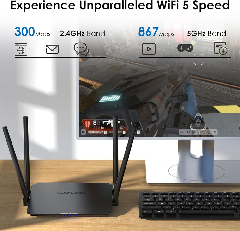 Wavlink AC1200 WiFi Router ، 2025 جهاز توجيه الإنترنت اللاسلكي المزدوج للمنزل ، يصل إلى 1.2 جيجابت في الثانية ، وتغطية تصل إلى 1500 قدم مربع