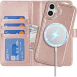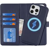 Premium PU leather wallet case designed specifically for iPhone 16 Pro max 6.9 inch! This 2-in-1 removable case balances compatibility and convenience to provide the ultimate in protection and functionality for your phone, with a built-in metal ring for easy access to your Magnetic wireless charger.