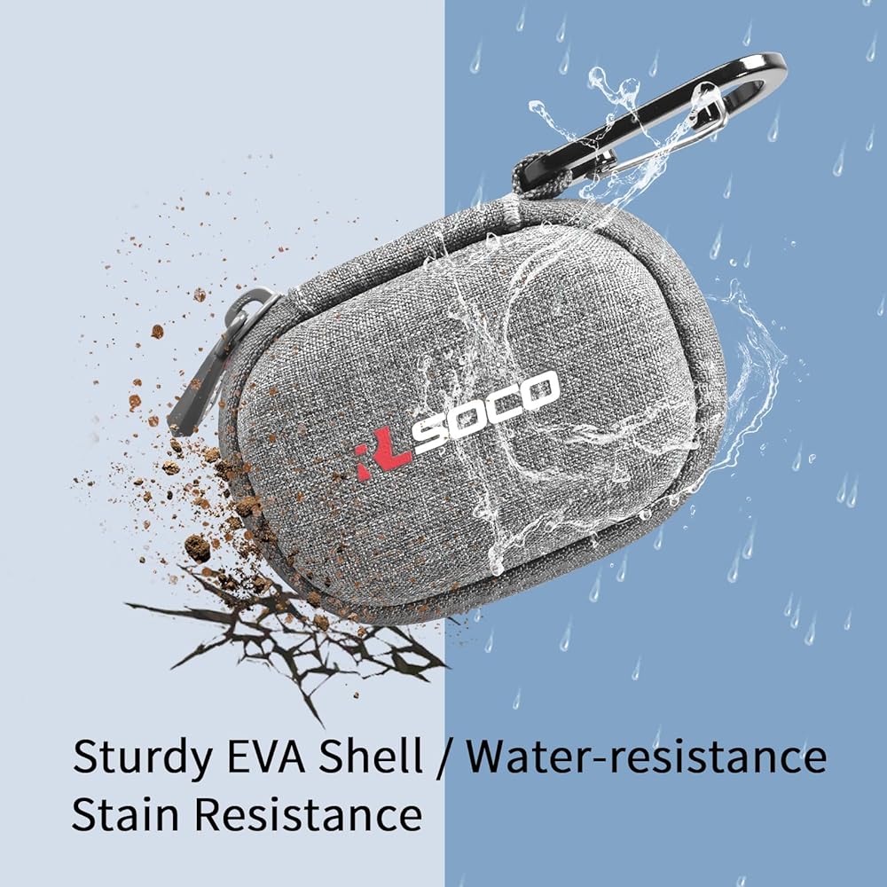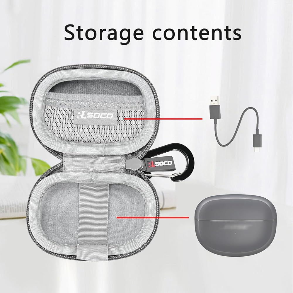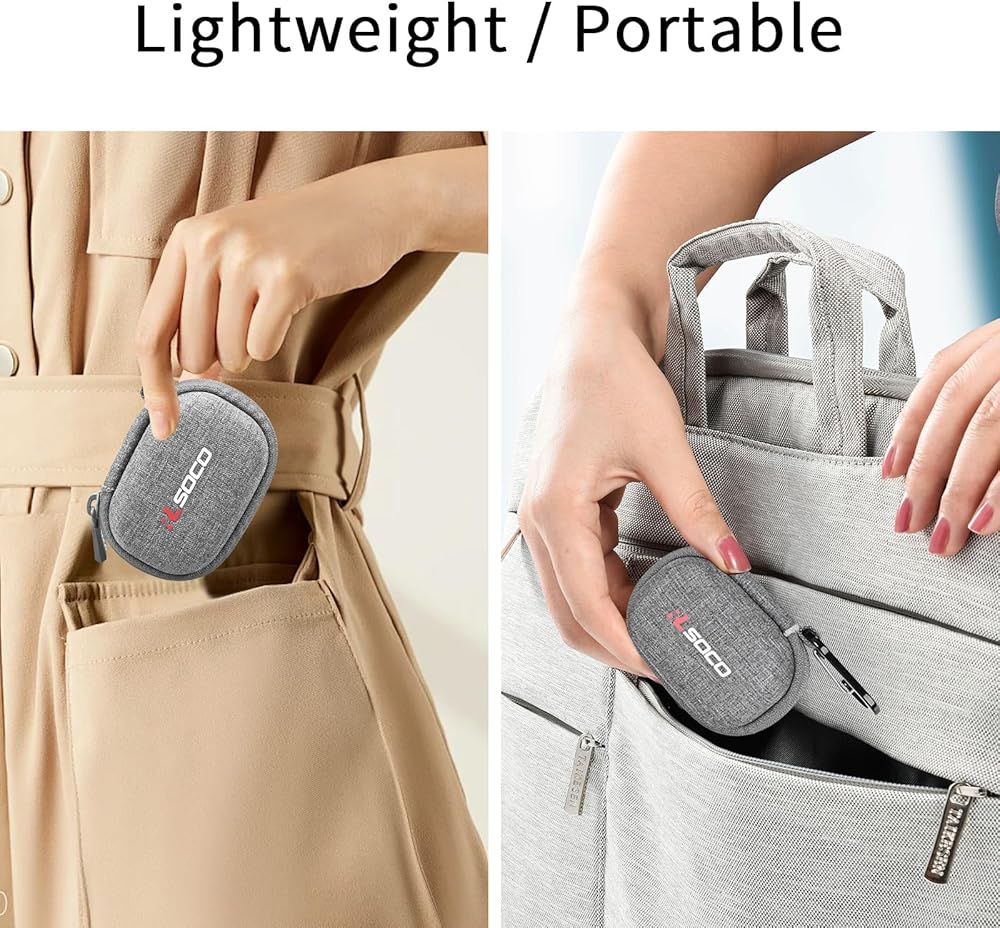 ♬ التصميم المدمج - العلبة مضغوطة بما يكفي لعقد الجهاز ويمكن إخراجها بسهولة. تستوعب العلبة السفلية علبة الشحن ويحمل الجيب العلوي الكابلات وأطراف الأذن.