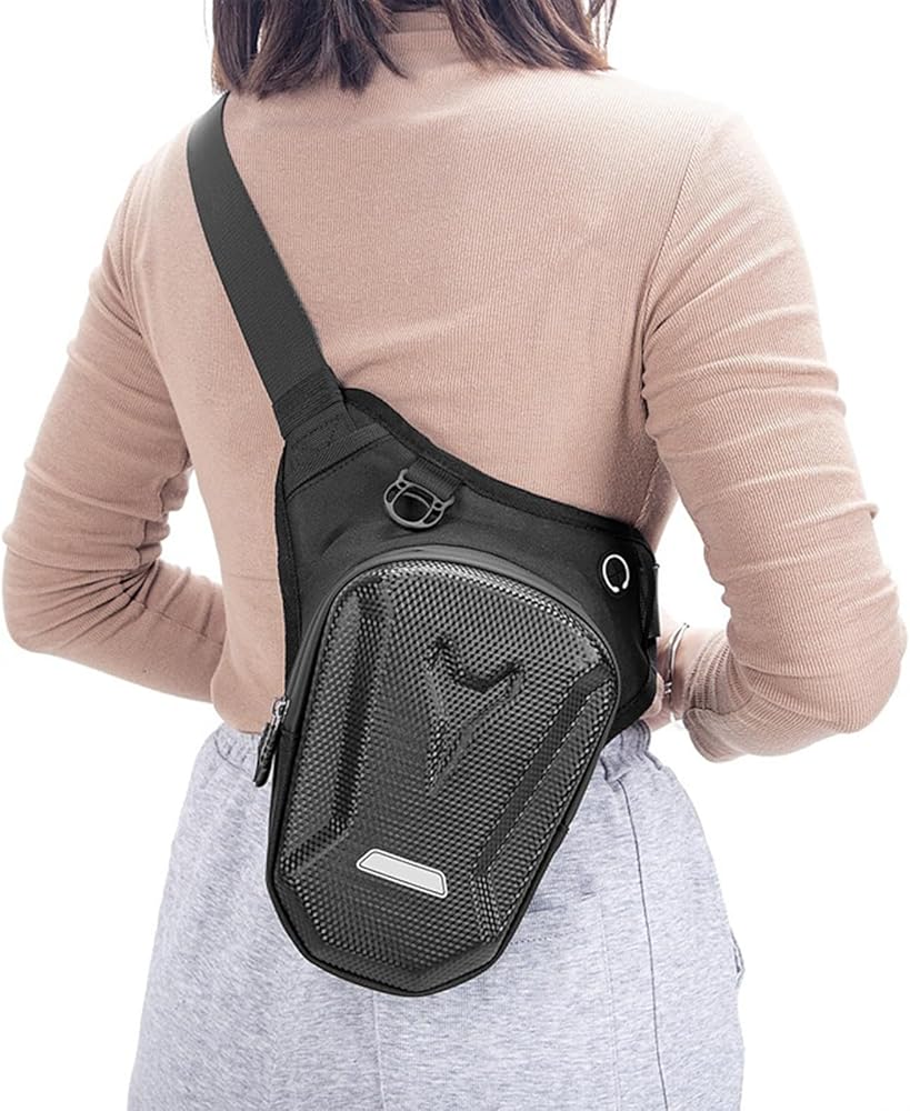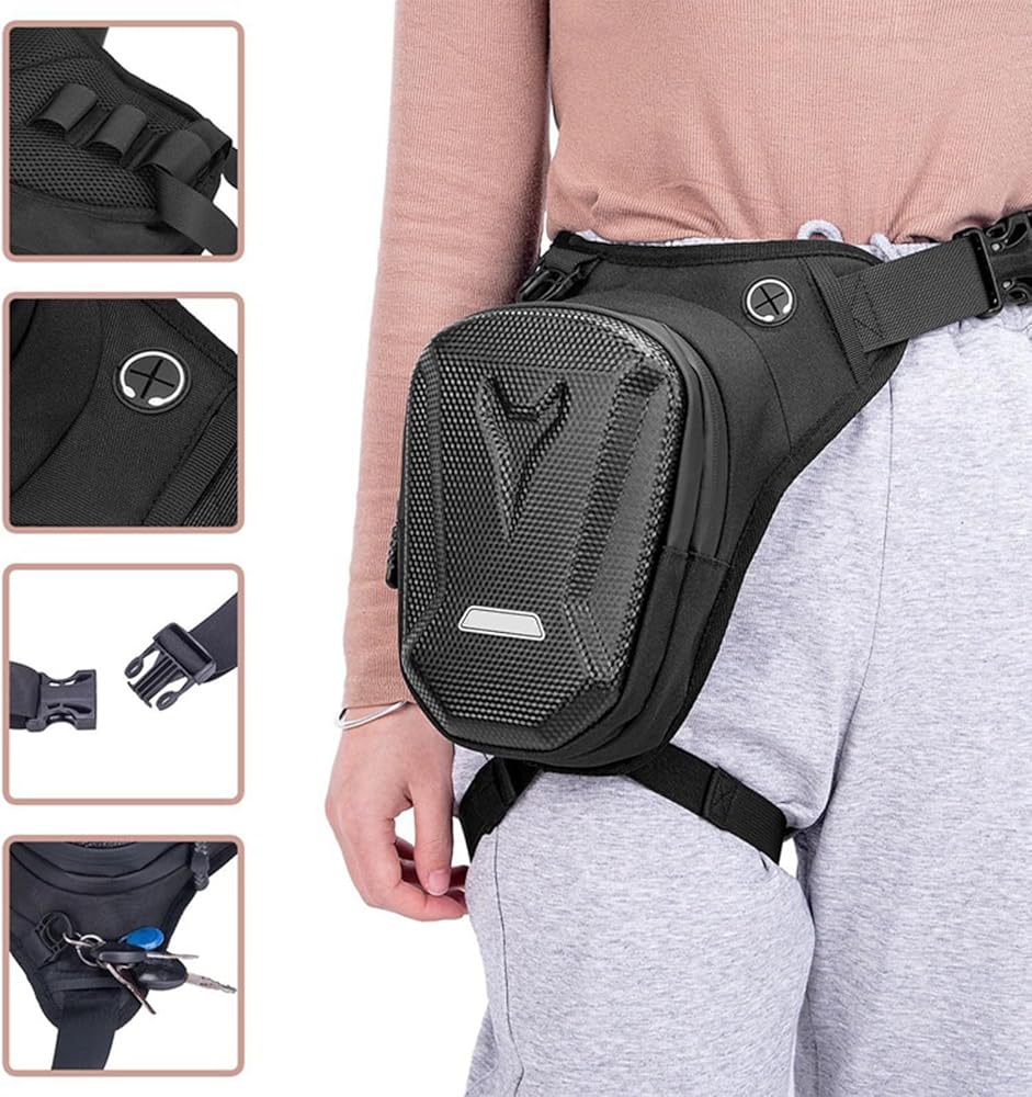 This motorcycle bag can be used as a drop leg bag, thigh bag, waist bag, and crossbody bag.