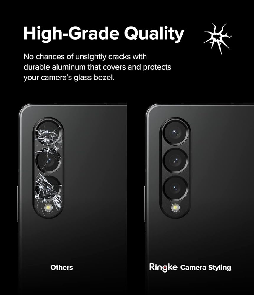 رينجكي واقي عدسة كاميرا متوافق مع سامسونج جالاكسي Z فولد 4، غطاء حماية متين باطار من الالومنيوم - اسود
