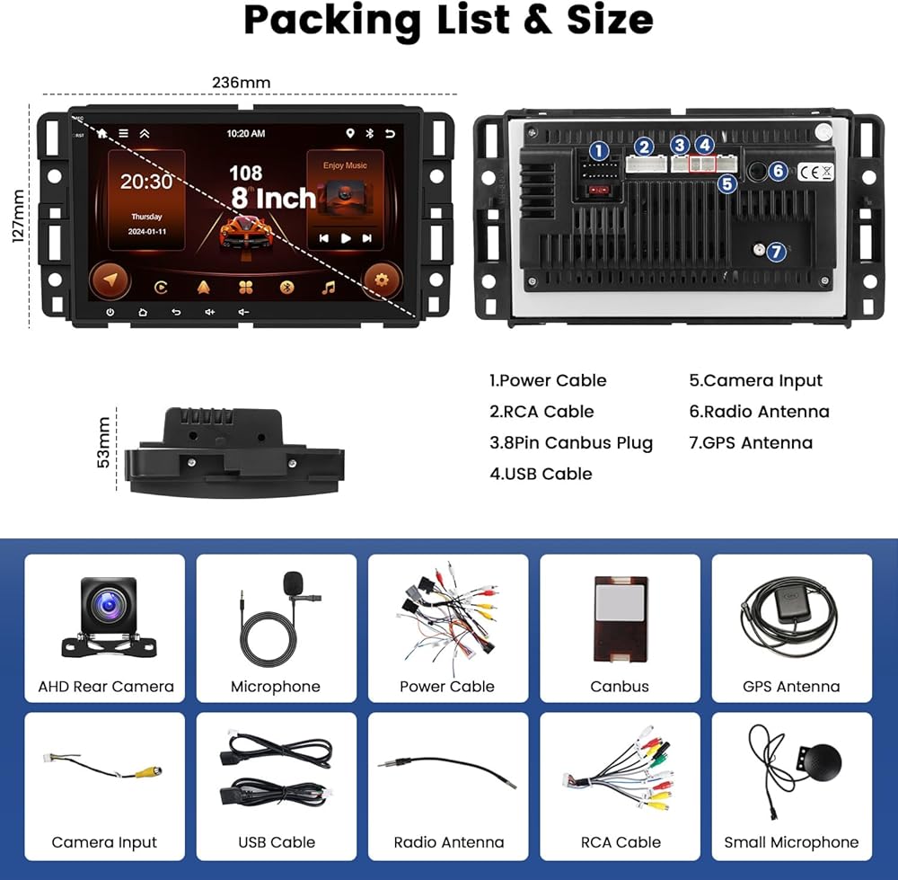 • 【نماذج السيارات المعمول بها】】 Hikity Android Car Stereo مع Canbus تناسب Chevy Avalanche (2007-2011) ؛ لتشيفي إمبالا (2006-2012) ؛ لتشيفي مونتي كارلو (2006-2007) ؛ لتشيفي سيلفرادو (2007-2014) ؛ ل Chevy Suburban (2007-2014) ؛ لتشيفي تاهو (2007-2014) ؛ ل Chevy Traverse (2009-2012) ؛ ل Chevy Buick Enclave (2008-2012) ؛ لـ GMC Acadia (2007-2012) ؛ لـ GMC Savava (2008-2013) ؛ لـ GMC Sierra (2007-2014) ؛ لـ GMC Yukon (2007-2014) ؛ لهامر H2 (2008-2009)