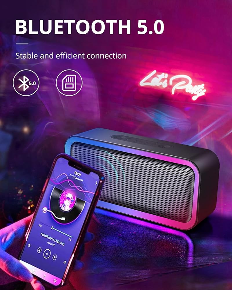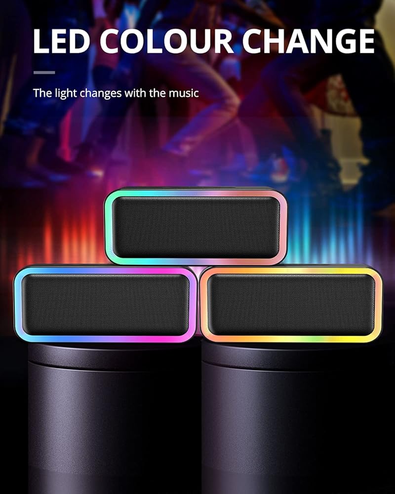 • مكبر صوت لاسلكي بإضاءة ملونة RGB: يتفاعل الضوء الرائع ويتزامن مع الإيقاع. يمكنك الاستمتاع بعرض ضوء LED عند الاستماع، مع تجربة استماع من المستوى التالي. يمكنك تغيير وضع الضوء بالضغط على الزر الموجود أعلى مكبر الصوت، وهو ينطبق على الفيديو، والألعاب، والحفلات، والحانات، وحفلات الشواء في الفناء الخلفي، وحفلات أعياد الميلاد، والتجمعات العائلية، وأجواء العطلات، وما إلى ذلك.