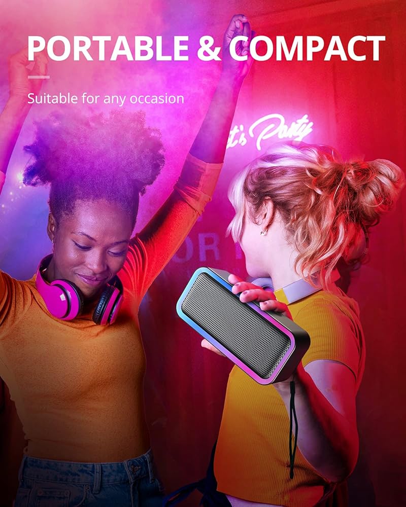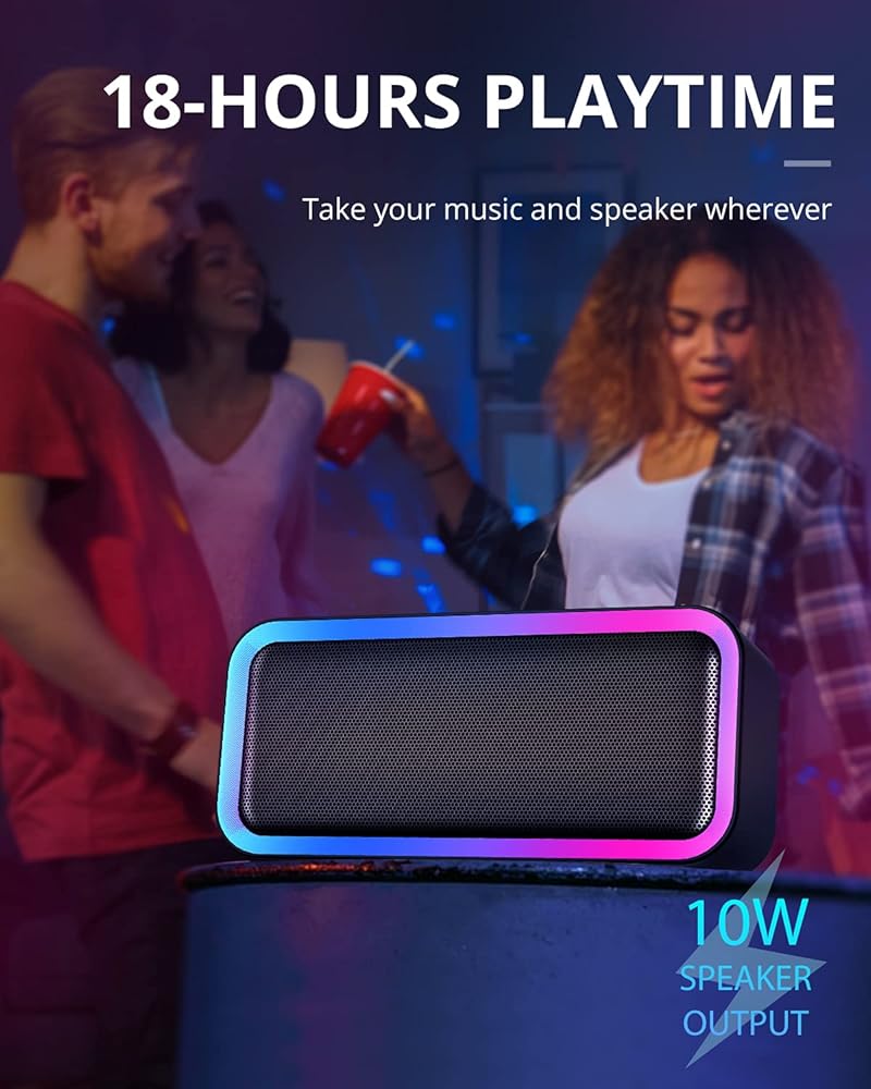 • أصوات عالية هاي فاي صادمة: مكبر صوت البلوتوث مزود بقدرة 10 وات من مكبر صوت ستيريو كامل النطاق ومعالج الإشارة الرقمية المتقدم، الذي يضخ صوت جهير متوسط ​​ثلاثي واضح ومفصل، ويقدم صوتًا صادمًا دون تشويه حتى عند أي مستوى صوت.