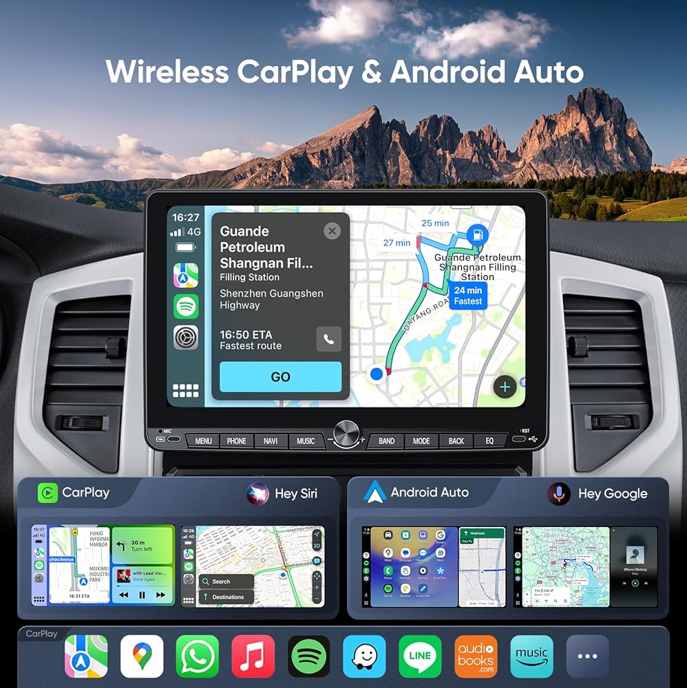 play Wireless /Wired Car Play & Android Auto】 استخدم هاتفك في أمان أثناء القيادة. من خلال قول "يا سيري" أو "موافق Google" ، للحصول على الاتجاهات ، وإجراء المكالمات ، وإرسال واستقبال الرسائل ، والاستمتاع بموسيقاك المفضلة. الحصول على الوصول إلى الأوامر الصوتية ، يمكن للمساعد Siri & Google مساعدتك في القيام بكل هذه الأشياء. ملاحظة: ربما يكون بعض الهواتف الذكية غير قادر على توصيل Android Auto.