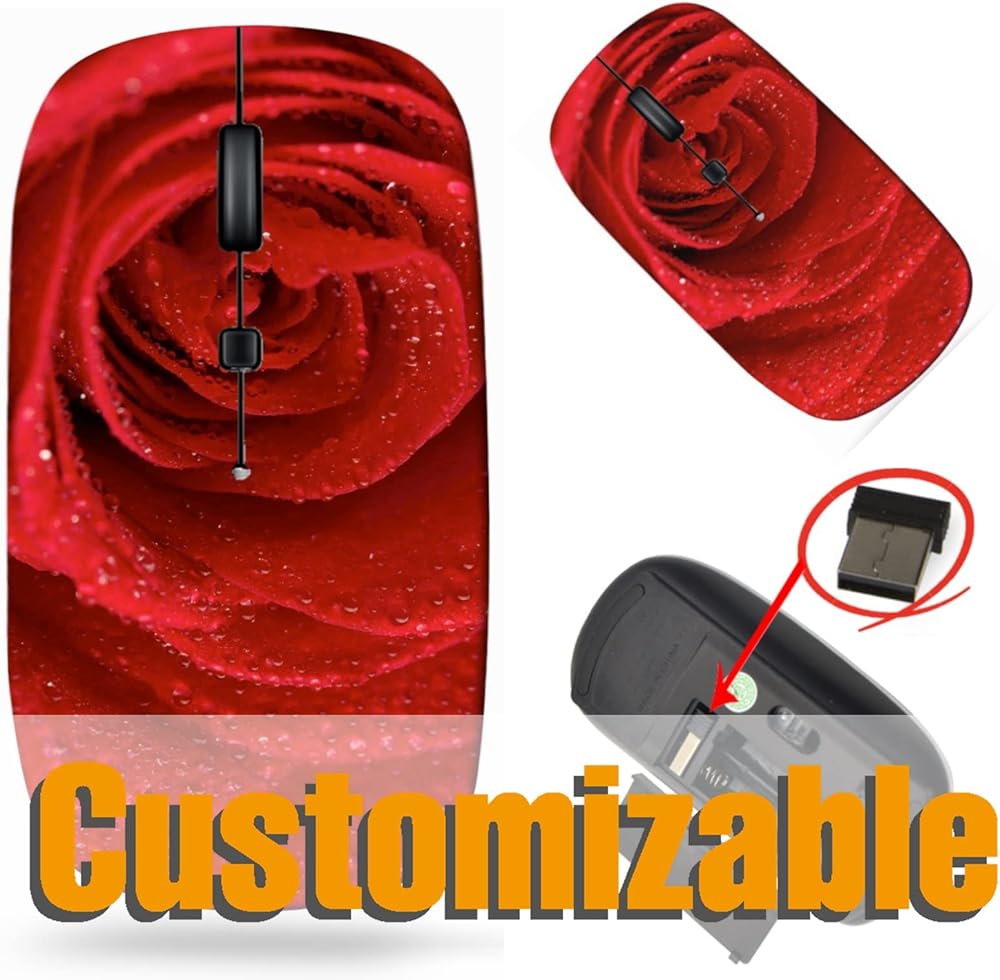 Maizi Wireless Mouse لجهاز الكمبيوتر المحمول الشخصي للكمبيوتر Mac Computer ، الفئران اللاسلكية لمعرف صورة الكمبيوتر المحمول: 19515210 Red Rose with Water D 2.4g مع جهاز استقبال USB مصنوع في الولايات المتحدة الأمريكية