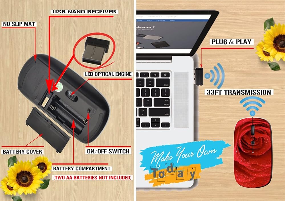 Wireless Mouse For Laptop with Amazing image design makes your mouse vivid and unique. Please search "Maizi Wireless Mouse" for thousands of unique designs.