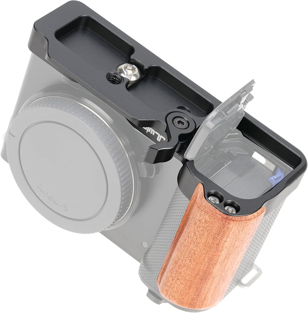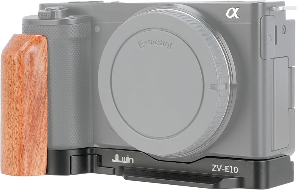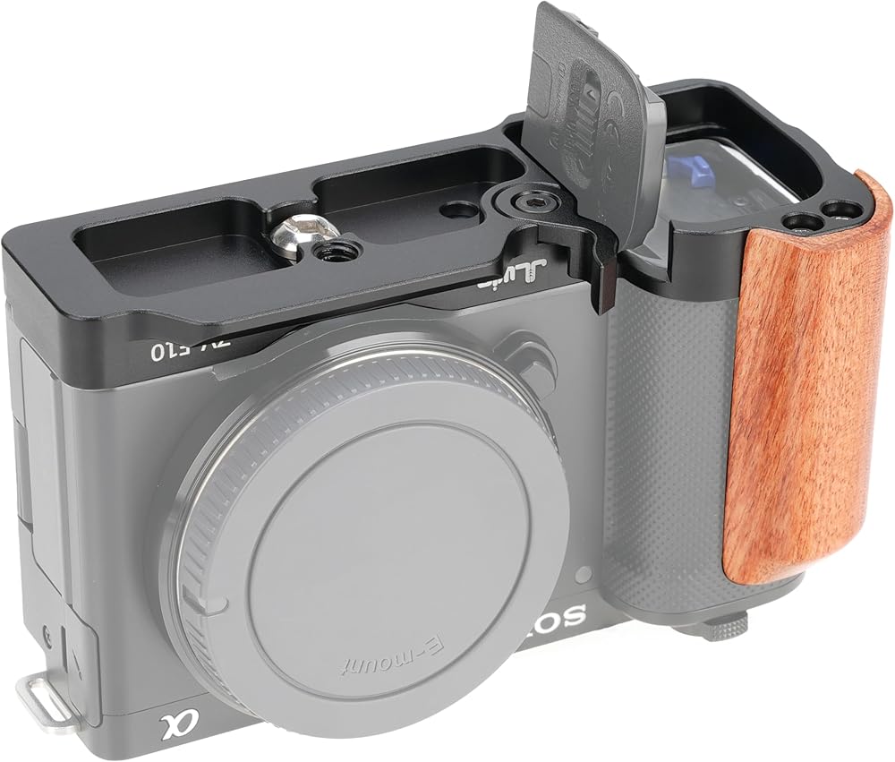 Quick Release L-Shaped Bracket Holder with Wooden Side Handle Grip for Sony ZV-E10 Camera