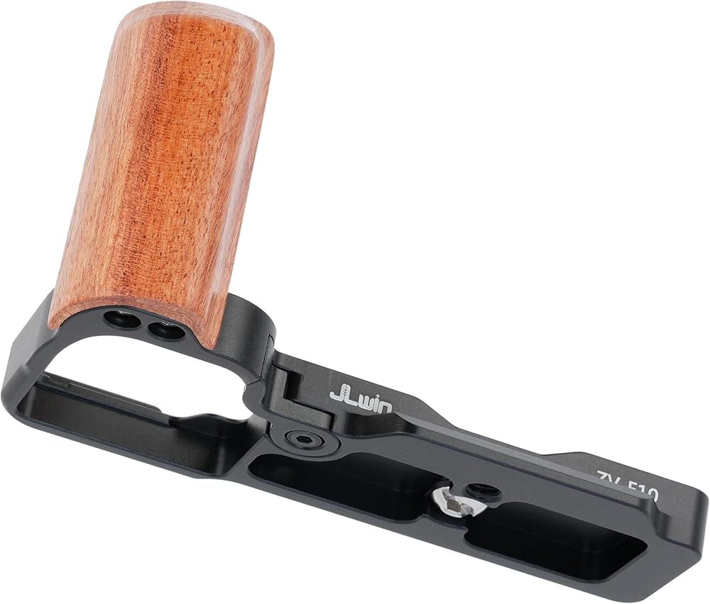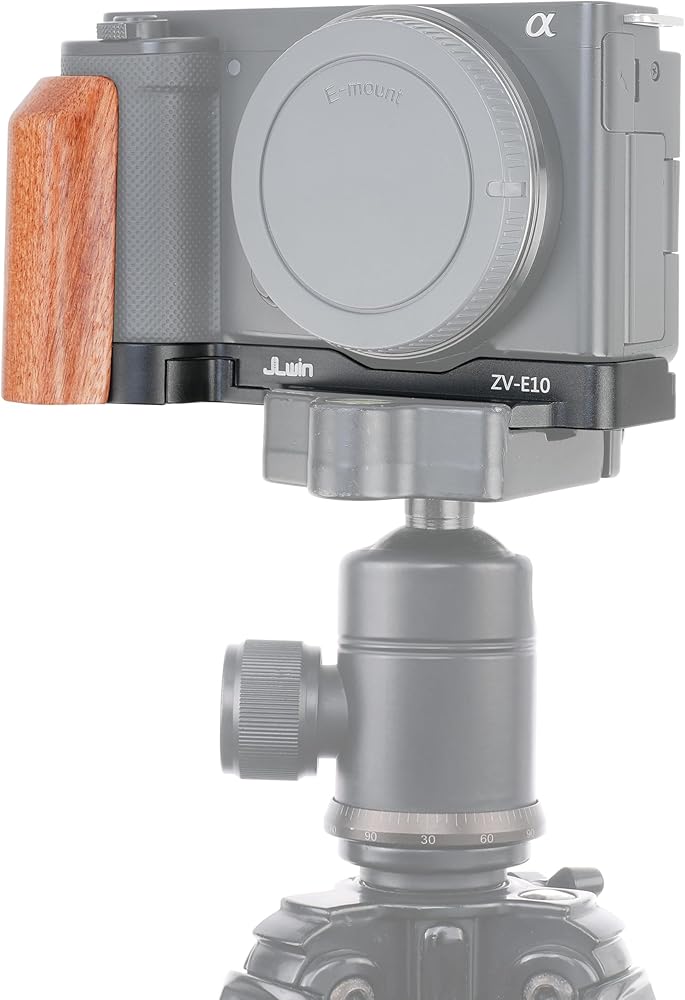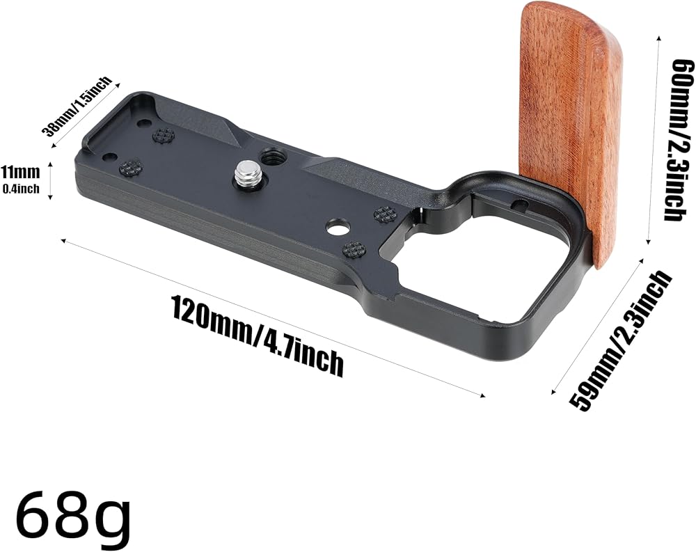 【Delicate Structure】This L-Shaped bracket holder with wooden handgrip is custom designed for Sony ZV-E10 mirrorless camera, perfect match for the camera body, and allows full access for battery compartment and flip screen. It helps you to reduce arm fatigue and provides easy mounts when handheld shooting and video vlogging.