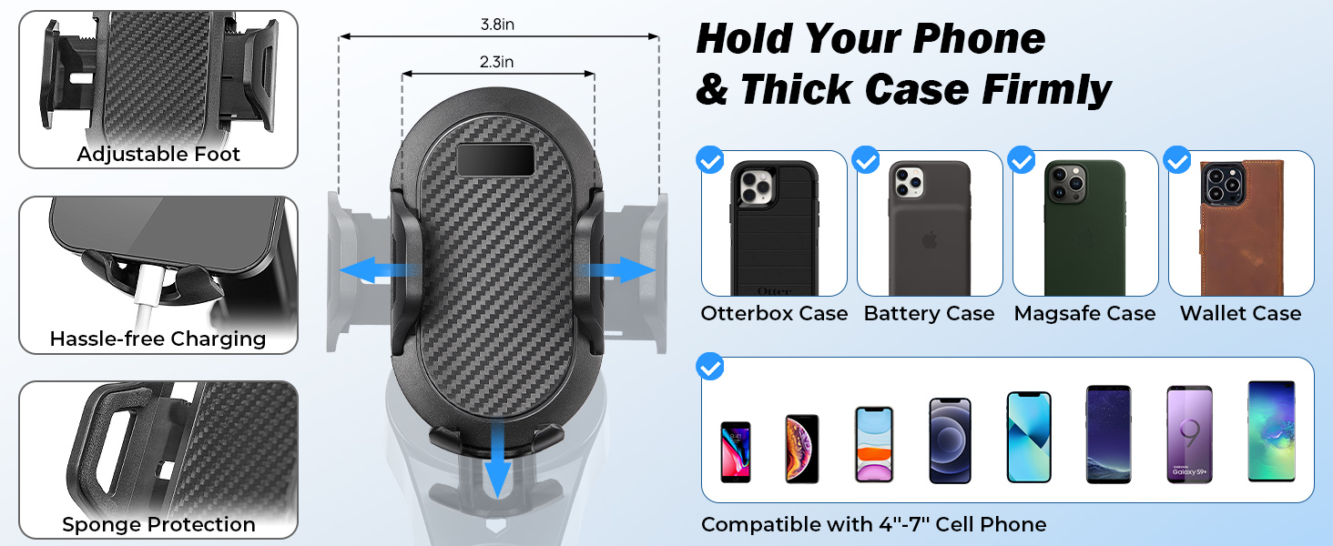 【التوافق الجميل】: حامل هاتف السيارة مثالي للهواتف الذكية حتى 7 "، متوافق مع iPhone 14 Pro Max/ 14 Plus/ 14/12/ X/ XS/ 8 Plus/ 8/7 Plus/ 7/ 6S Plus ، Samsung Galaxy S10/ S10e/ S9/ S8 ، وأكثر من ذلك. من المتين للغاية أن تمسك هاتفك بإحكام