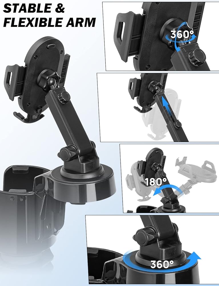 【360 عرض قابلة للتدوير وذراع طويلة قابلة للتعديل】: يمكن تدوير رأس تركيب هاتف السيارة في 360 درجة ، مما يتيح مشاهدة تطبيق التنقل مع الشاشة أفقياً. يمكن تمديد الذراع القابلة للتمديد لتلبية احتياجاتك ويمكن للمقطع منع الهاتف الذكي من الهز والانخفاض العرضي. يمكنك ضبط المسافة بينك وبين الحامل بسهولة