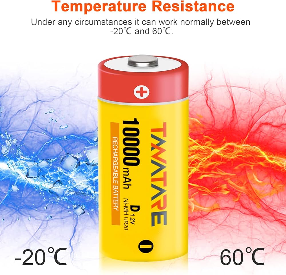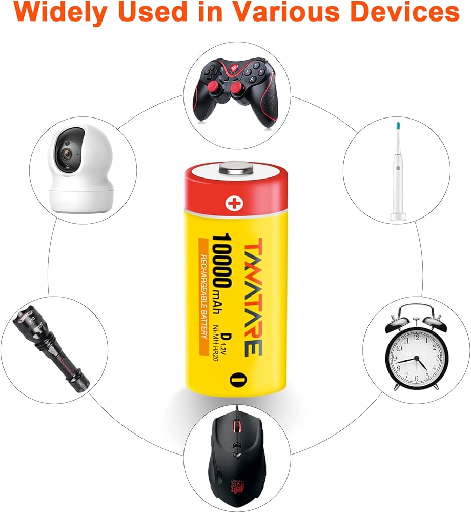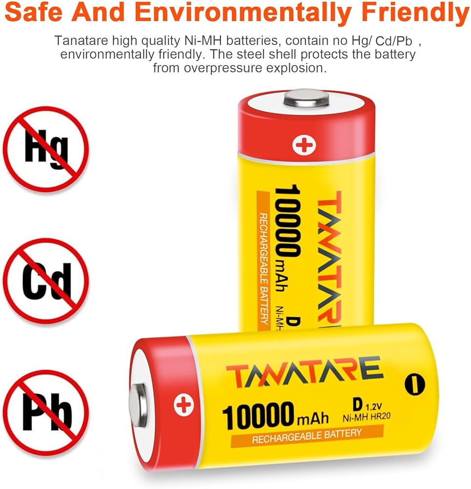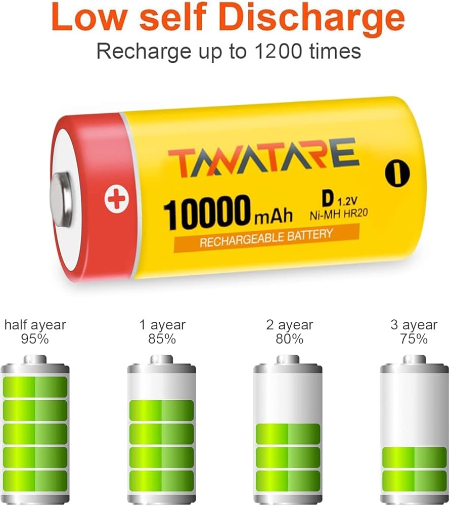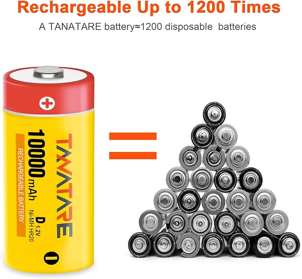 • تطبيق واسع: يمكن استخدام بطاريات NIMH D القابلة لإعادة الشحن Tanatare في أي جهاز مناسب لبطاريات D ويمكن شحنها من قبل جميع شواحن D NIMH