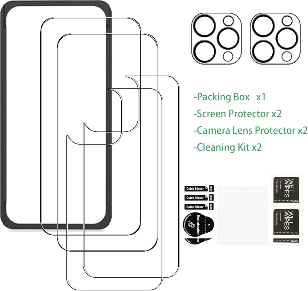 [Compatible Models]: 2 pcs Front Protector ++2 pcs Back Screen Protector + 2 pcs Camera Lens Protector for iPhone 15, Please check your phone model before purchasing