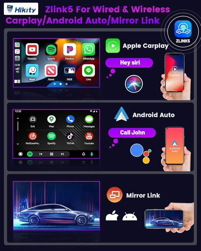 【Carplay و Android Auto المدمج في Wireless و Wireroid】 يمكنك استخدام CarPlay و Android Auto بواسطة تطبيق "Zlink" ، يتم تثبيته مسبقًا في الراديو. يمكنك الاتصال بستريو سيارة الشاشة التي تعمل باللمس هذا عبر اتصال كابل بيانات Bluetooth أو USB للوصول إلى جميع الوظائف تقريبًا على هاتفك من خلال الشاشة الكبيرة ، مثل الموسيقى ، وملاحة GPS ، والمكالمات ، والرسائل ، إلخ ، أكثر ملاءمة من ذي قبل