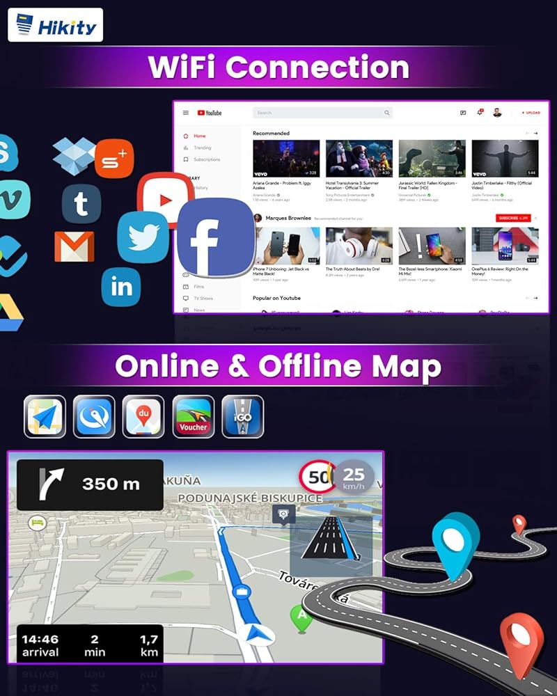 【Android 13 Stereo مع GPS و HIFI】 يحتوي راديو سيارة الشاشة التي تعمل باللمس على تطبيق خريطة مدمج في وضع عدم الاتصال "هنا نذهب". عند الاتصال بـ WiFi ، يمكنك تنزيل الخرائط غير المتصلة بالإنترنت أو استخدام الخرائط عبر الإنترنت أينما تريد. يمكن ضبط HIFI مع 16 شريطًا Eq على شكلك ، وأيضًا مع أنماط افتراضية مختلفة (موسيقى الروك ، موسيقى الجاز ، كلاسيكية) لاختيارك