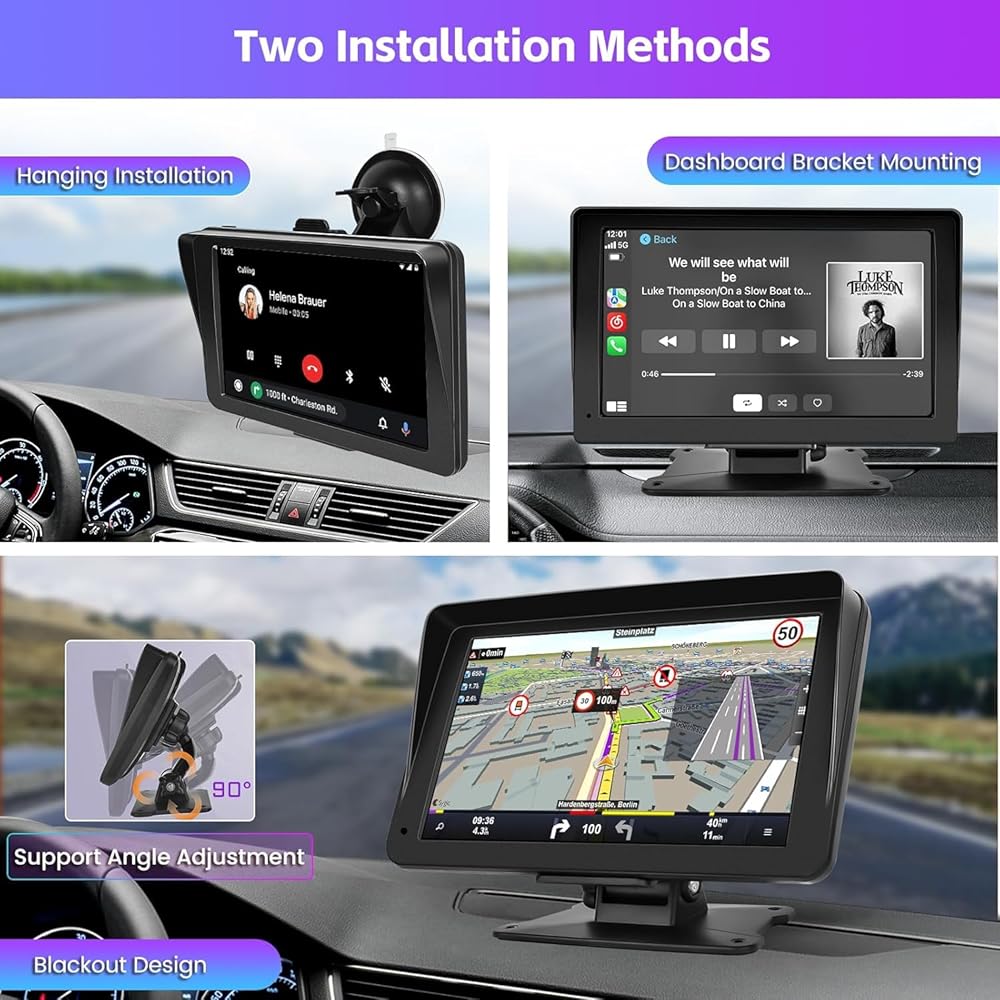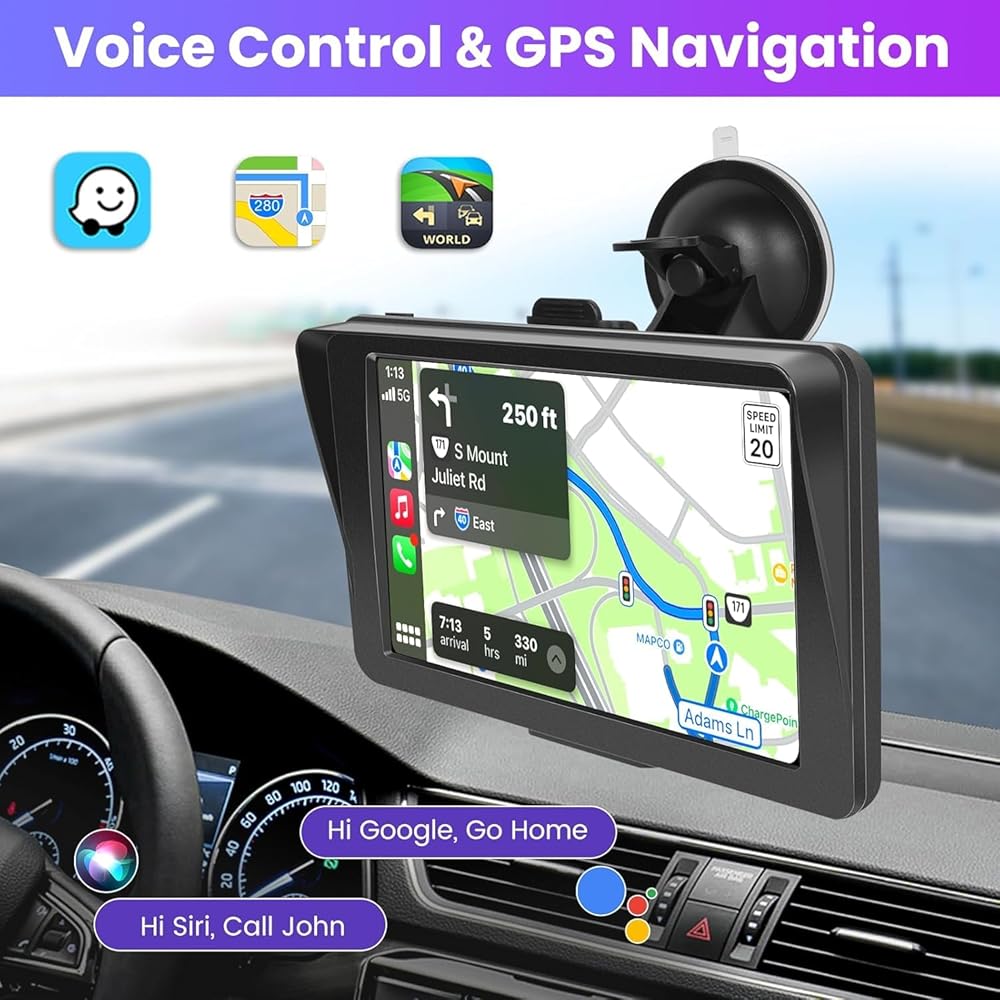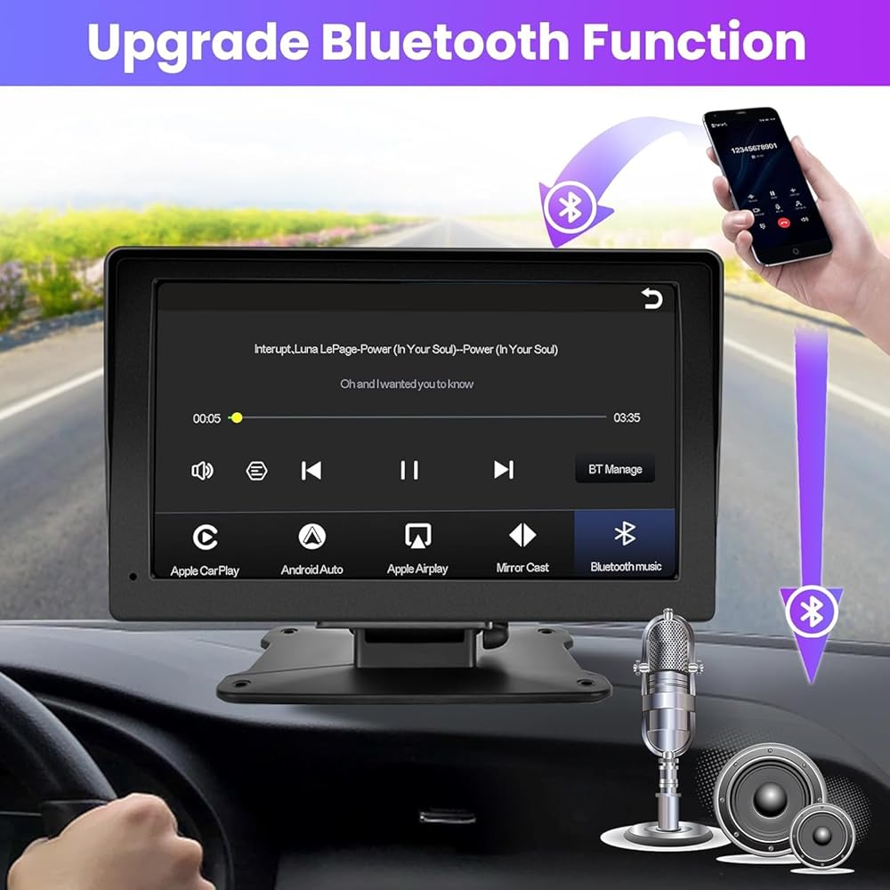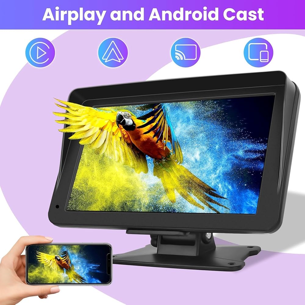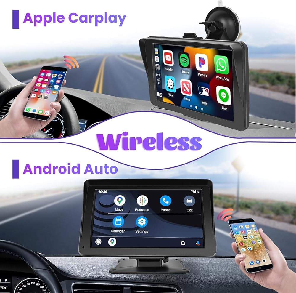 شاشة Hikity Wireless Carplay - Dash Mount 7 بوصة الشاشة التي تعمل باللمس الاستريو Android Auto ، و Portable Play Play Support Siri Control ، GPS Mavigation ، Bluetooth ، FM ، Aux ، TF