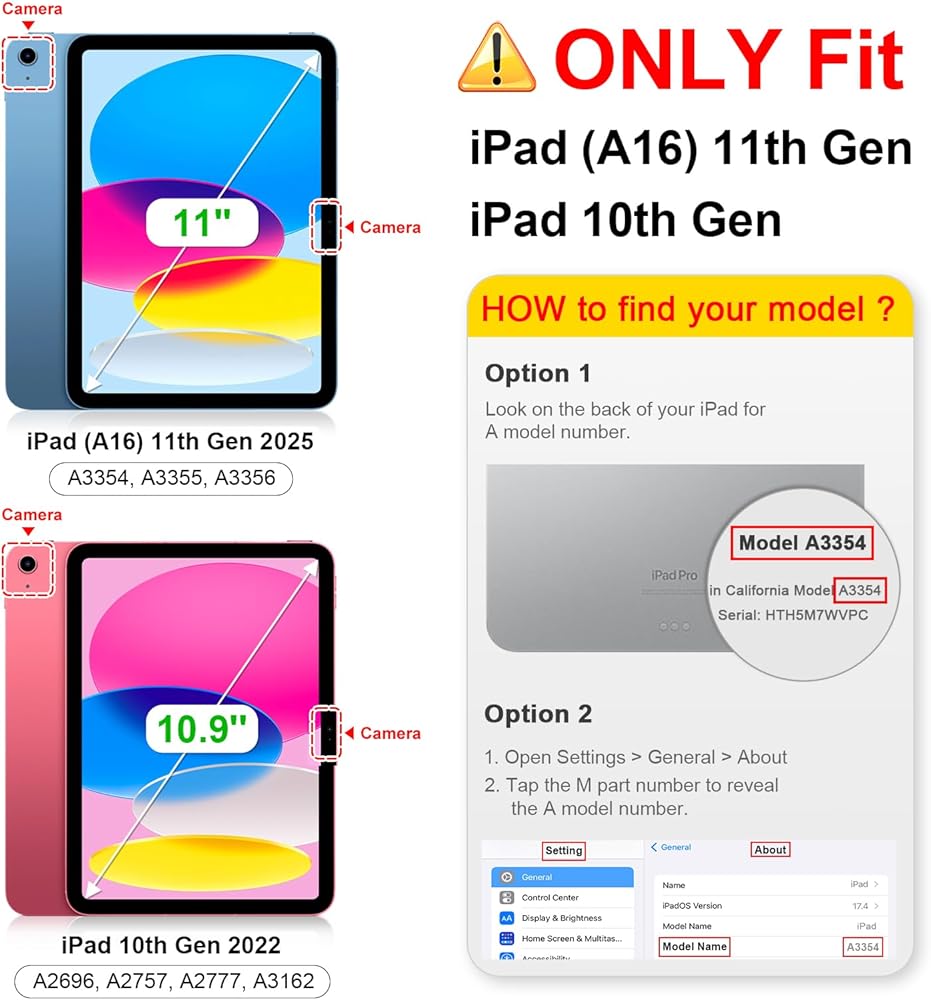 تم تصميمه حصريًا لجيل iPad 10th الجيل 10.9 بوصة 2022 (رقم الطراز: A2696 / A2757 / A2777). غير متوافق مع أي أجهزة أخرى. غير متوافق مع أي أجهزة أخرى.