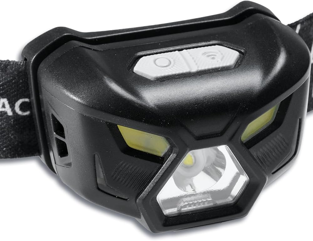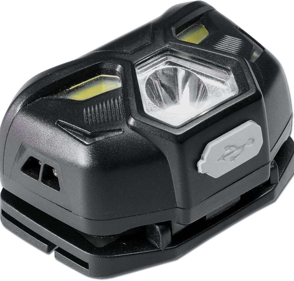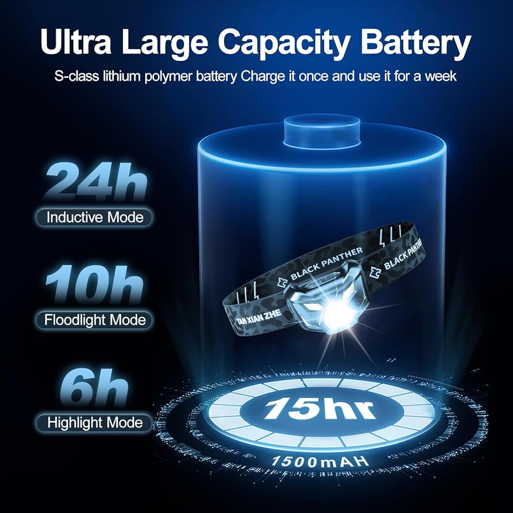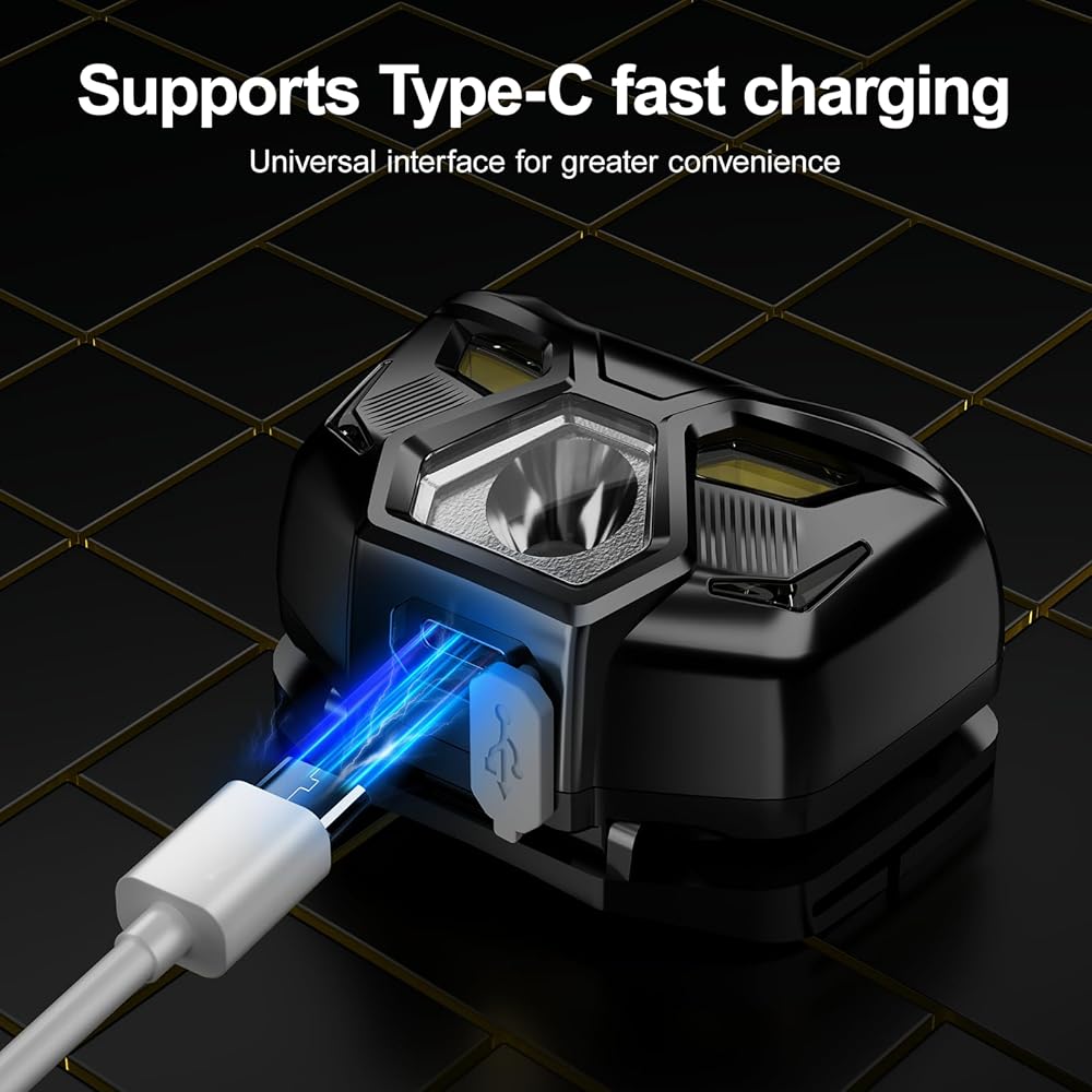 • Motion Sensor and 5 Modes:The headlamp has motion sensor mode,press the sensor button,waving on the right side of the headlight can quickly switch the turning ON/OFF of the lights.Headlights can be individually controlled to turn on the main and side lights, or they can be turned on simultaneously.Combined with the red auxiliary lighting mode, the 5 modes headlight can meet all scenarios.