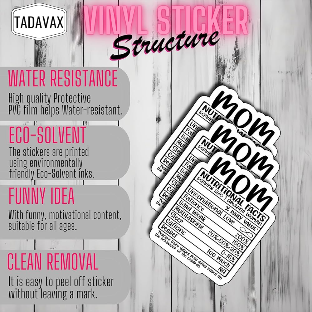 (3pcs) موم الحقائق الغذائية ديكور للهواتف فينيل مقاوم للماء لهدايا زجاجة ماء لأمي من بنات وأبناء ، يوم الأم ، عيد الميلاد ، عيد ميلاد ، هدايا الجدة ، الأمهات الجديدة 3 "x2.3"