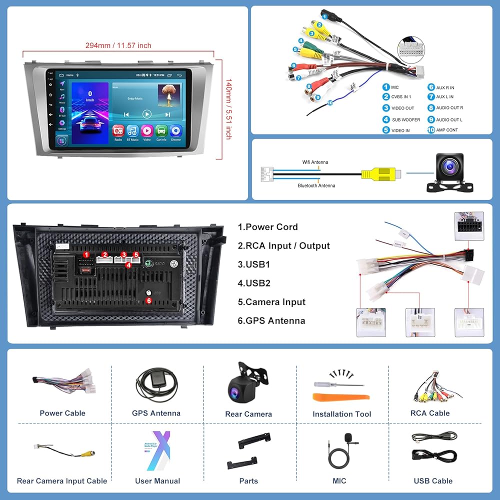 2+64g لـ Toyota Camry 2006-2011 Car Radio مع Carplay اللاسلكي/Android Auto و Android Car Stereo 9 بوصة شاشة GPS التنقل WiFi Bluetooth FM/RDS Link Camera SWC SWC