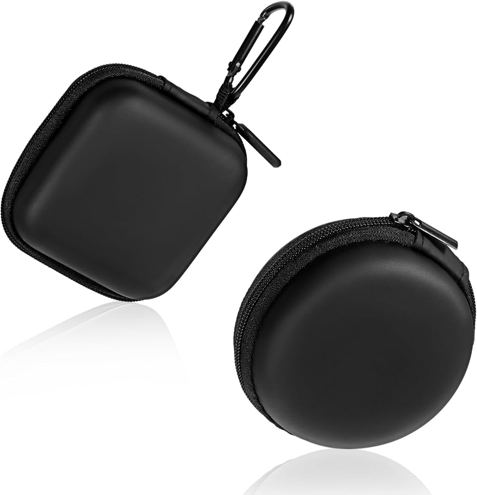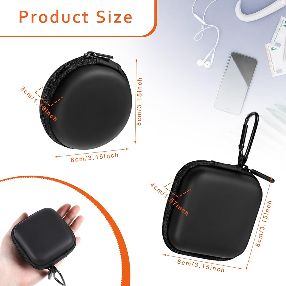 【Portable and Easy to Carry】:The small zipper case comes with carabiners for easily and safely hooking to your handbag, backpack, or pants belt. This earbud carrying case is lightweight and compact, suitable for travel or daily use. The small headphone carrying case measures 3.15 × 3.15 × 1.57 inches (square) and 3.15 × 3.15 × 1.18 inches (round).
