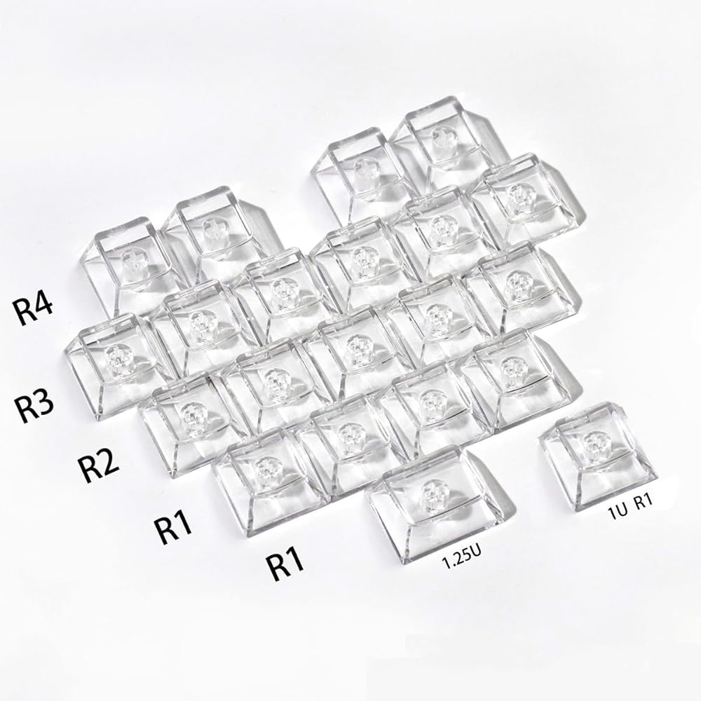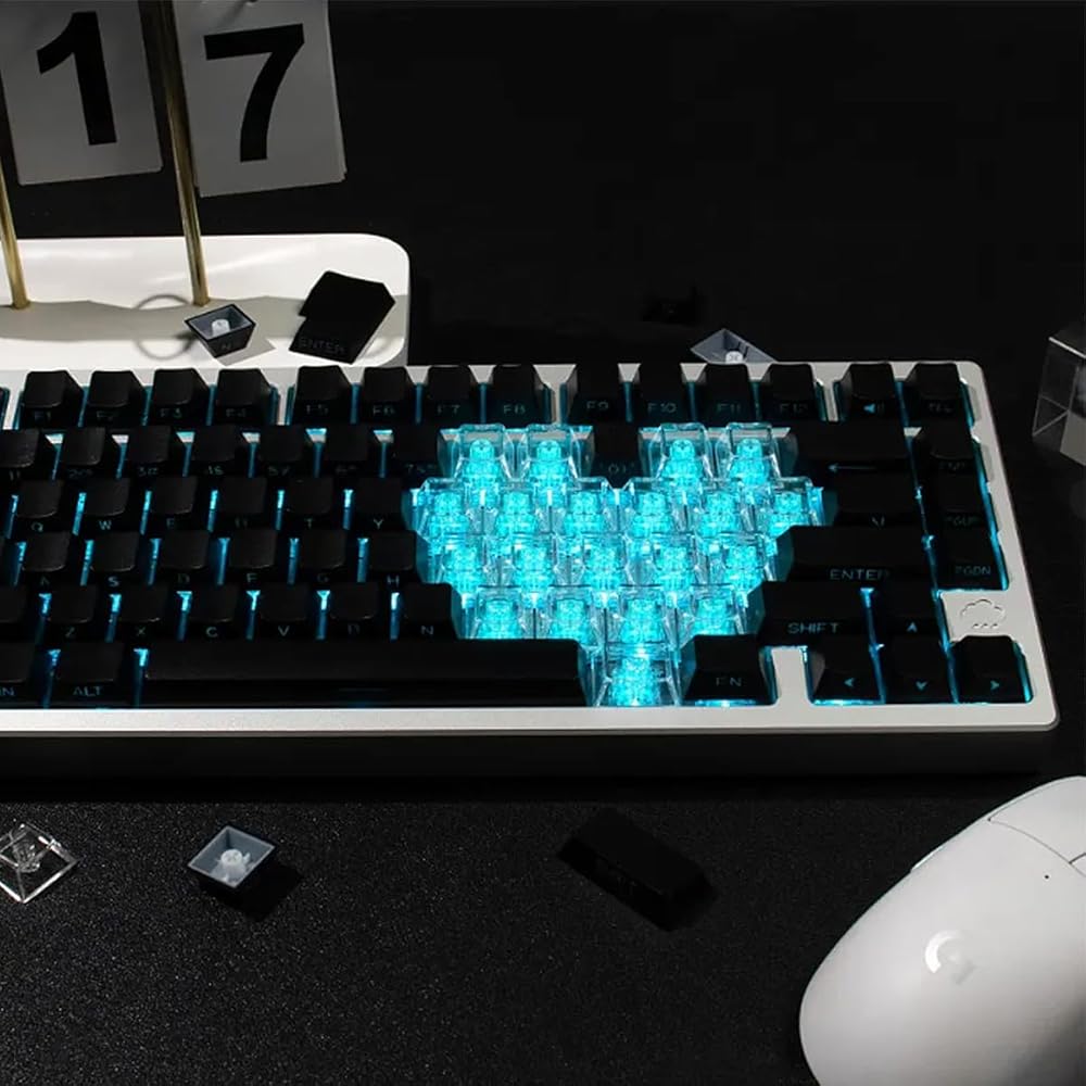 مفاتيح الكريستال الشفافة: توفر هذه الكبسولات المفاتيح البديلة المتاحة متانة استثنائية وشعور متميز. تسمح Keycaps الخلفية للوحة المفاتيح بالتألق ، مما ينتج عنه تأثير بصري مذهل.